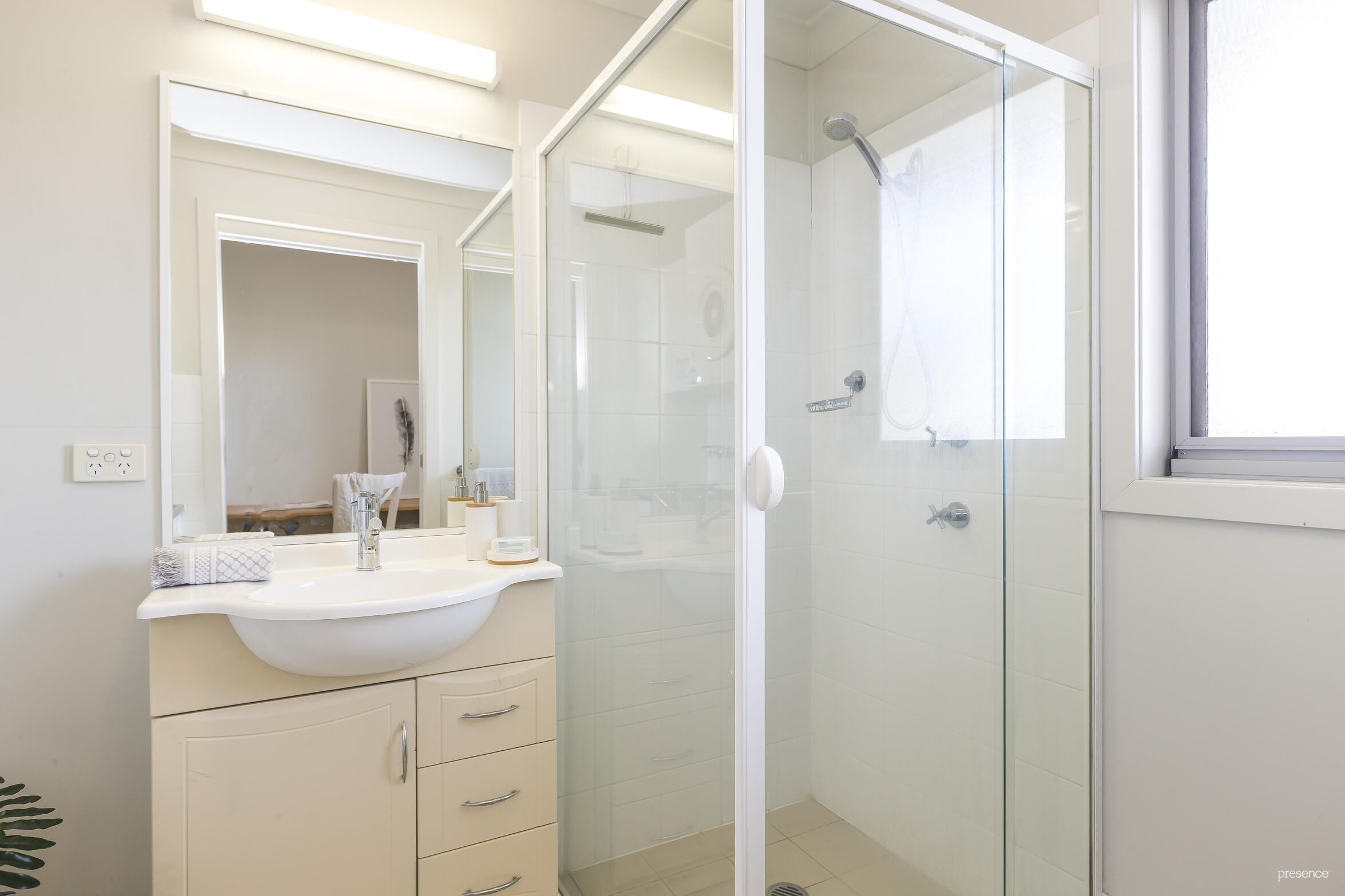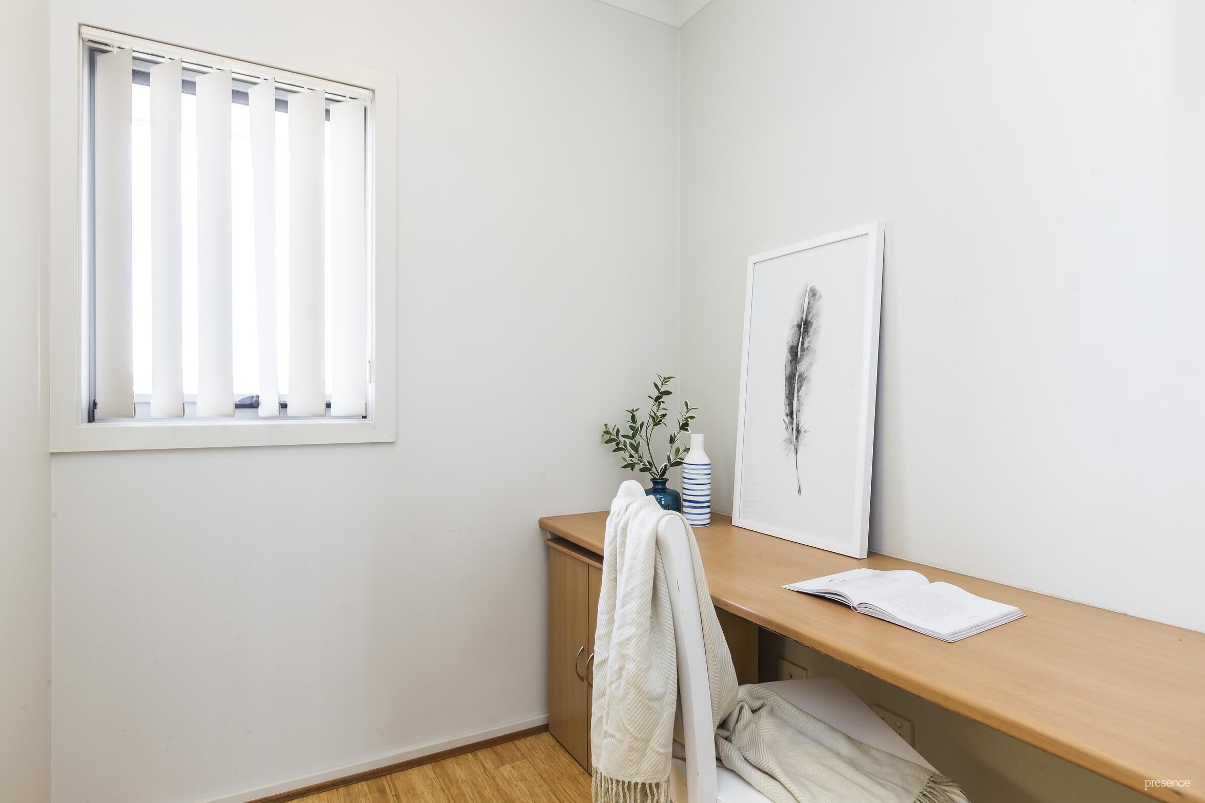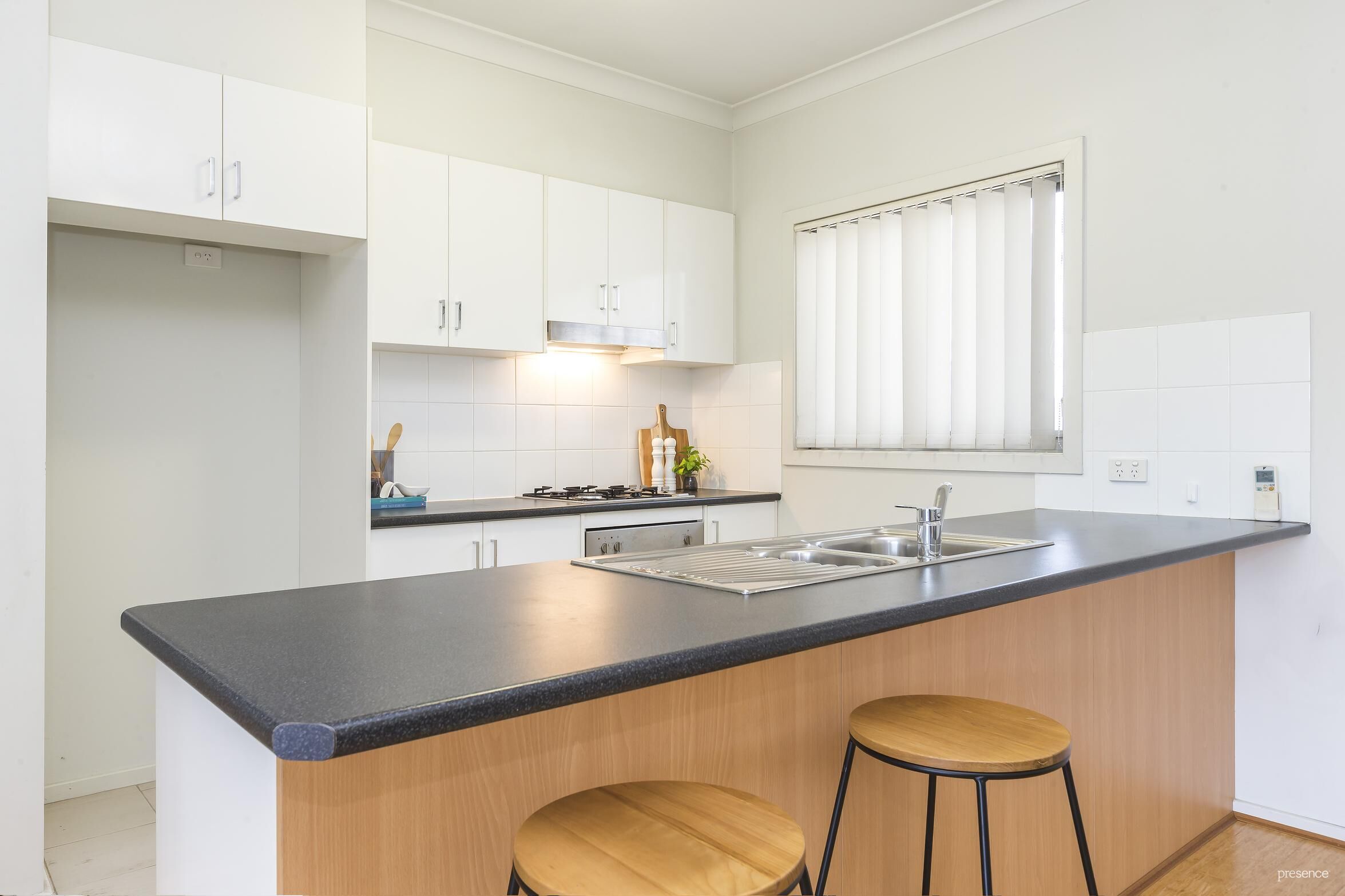 An open floorplan with high ceilings, bamboo floors and the kitchen overlooking the combined living and dining area combine to creates a superbly spacious feeling in this home, while the deep undercover balcony ensures morning sunshine filters throughout. The practical design sees bedrooms nicely tucked away from the living area, with both providing built-in robes and all-important privacy. Sitting between the bedrooms is a study nook and bathroom/laundry.