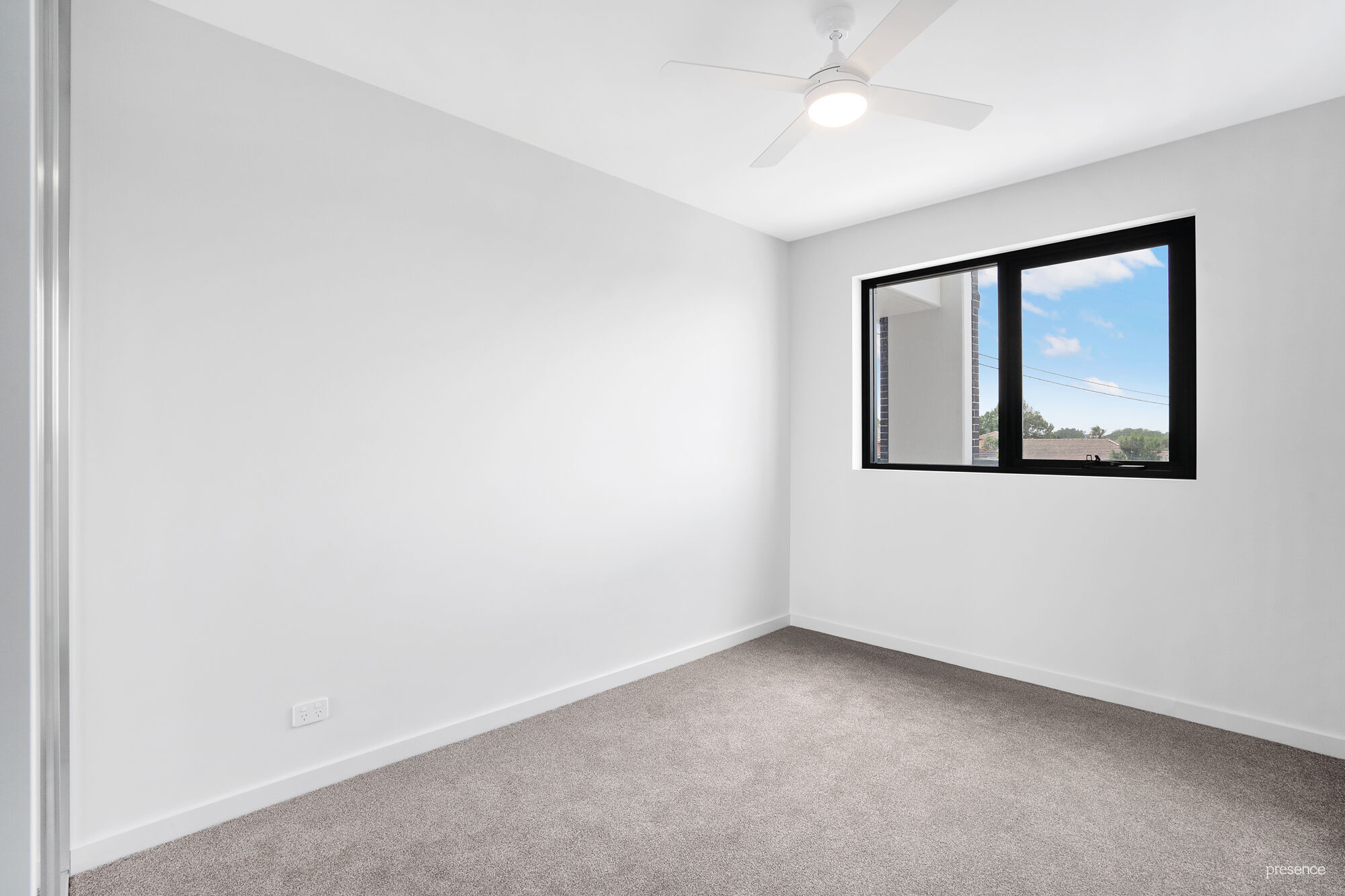 Including three generous bedrooms with built-in robes, including a master with ensuite, and two stylish bathrooms finished with frameless showers and floor-to-ceiling tiling. The open-plan kitchen, living, and dining zone is anchored by a dream galley kitchen featuring ceramic splashbacks, 20mm stone benchtops, and premium Fisher & Paykel appliances.
