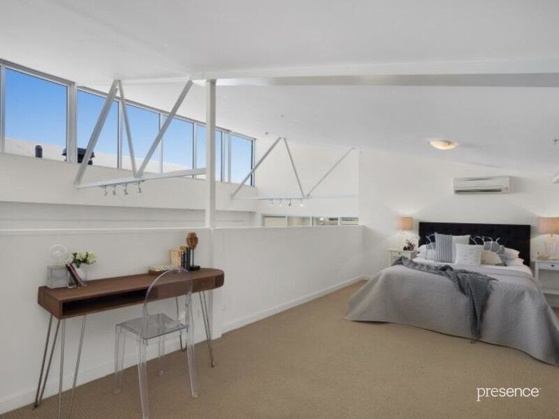 With its original industrial saw-tooth roof, exposed internal columns and hardwood timber floor, the remnants of the building’s past life are on proud display from the moment you enter inside. An open plan living and dining expanse incorporates a galley-style gas kitchen with stainless steel benchtops and abundant storage before seamlessly connecting to a private terrace where you can relax or dine alfresco. Third bedroom upstairs or your choice as a second living space accompanies two superb bedrooms, a master ensuite and full bathroom with laundry facilities. Unit 319 has had lots of extras put in such as air conditioning in all three bedrooms and living area, louvre windows, track lighting, second phone line, plumbing for a second ensuite if you wish, half-light and full shade blinds and an extra door from the master bedroom to the terrace. Secure entry, a car space and storage illustrate the complete convenience of a property primed for sensational lifestyle or investment satisfaction.