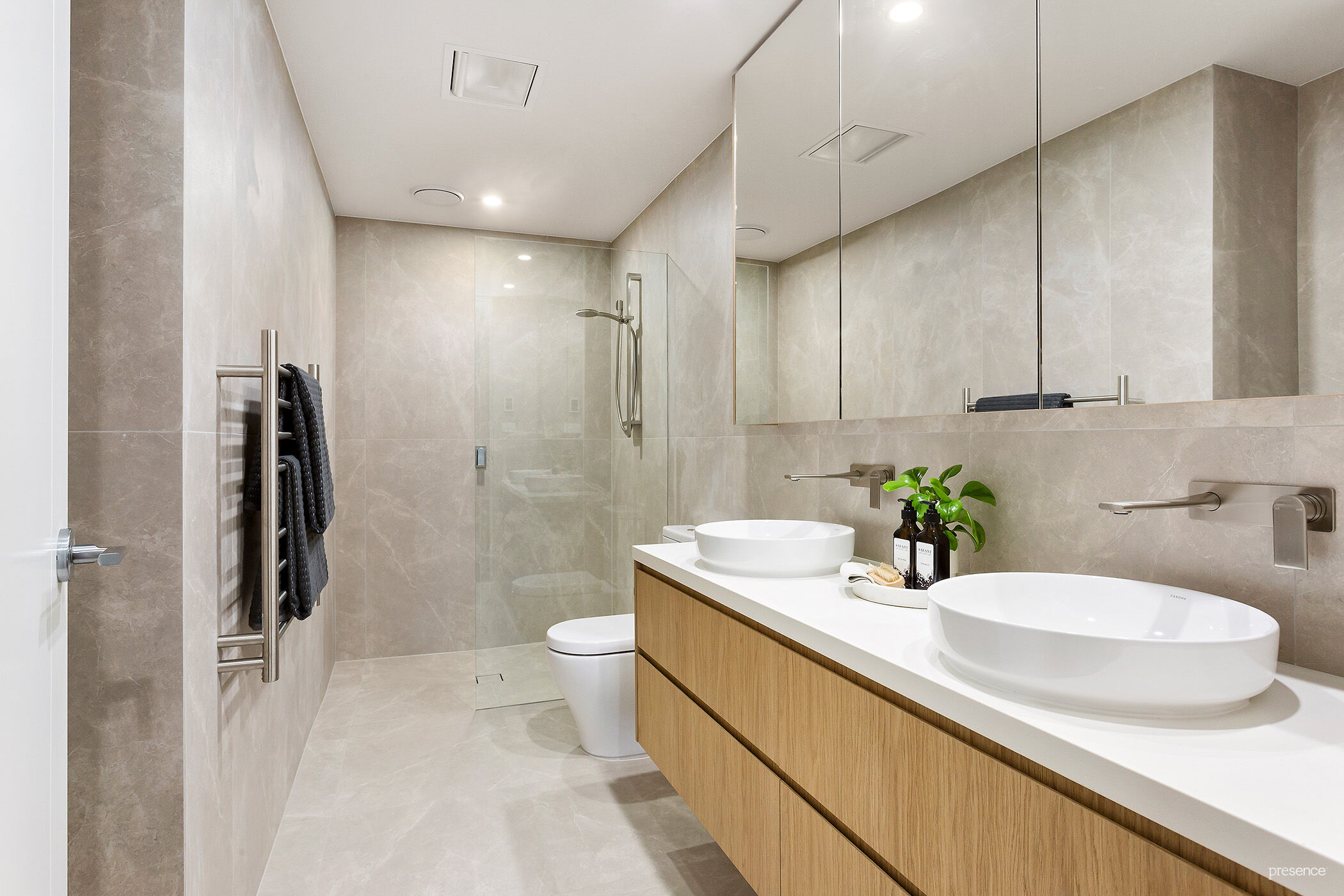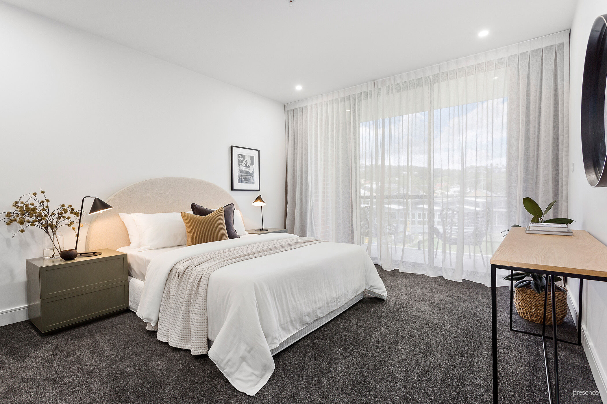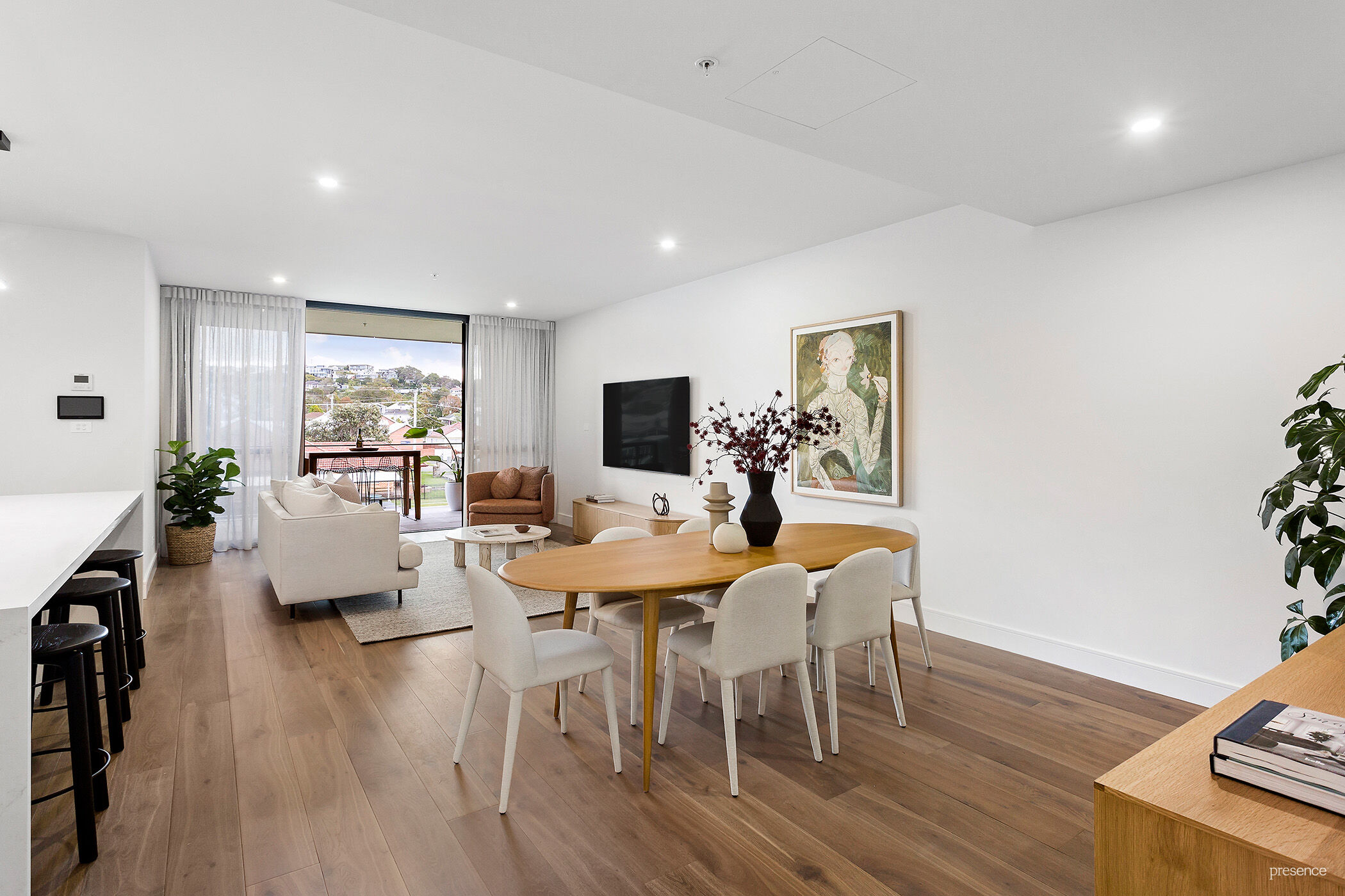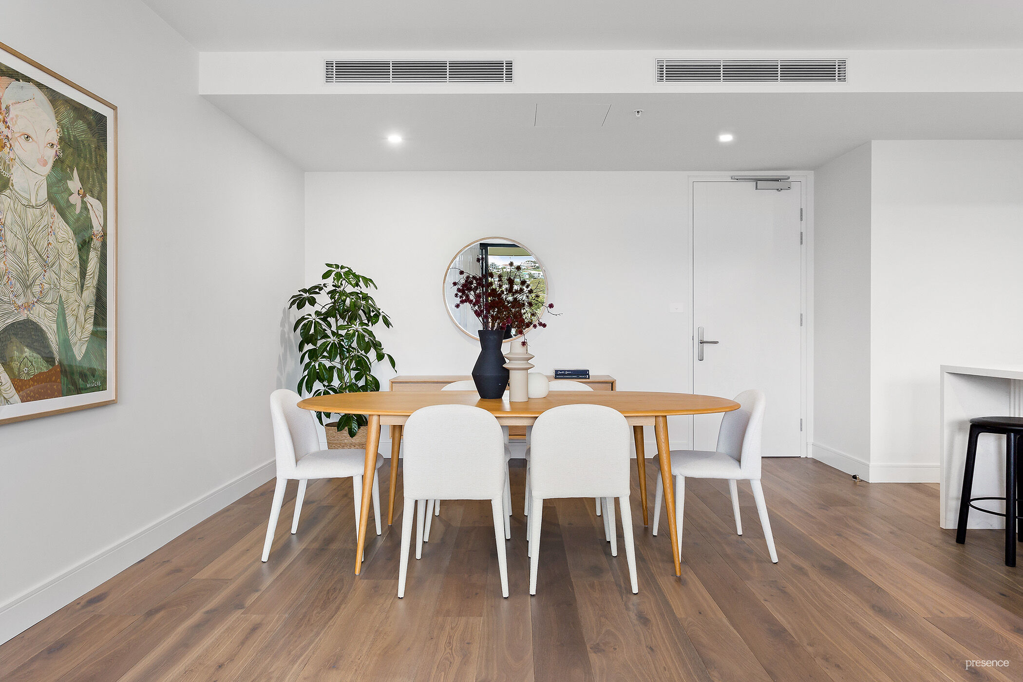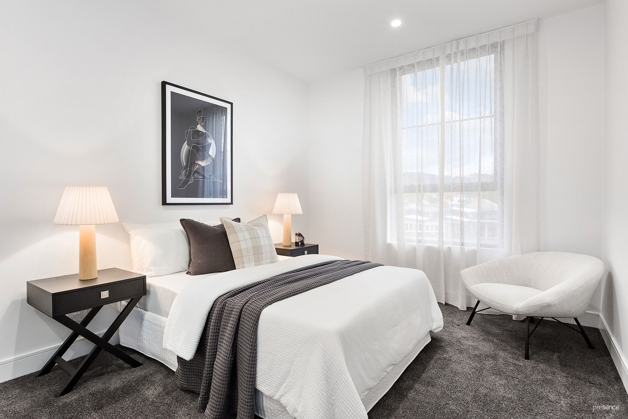 Embrace the spacious elegance of this brand new apartment at “Acoya.” The design philosophy combines contemporary luxury with sleek aesthetics, featuring environmentally sustainable oak engineered flooring that flows seamlessly through the living, dining, and kitchen areas. Light furnishings and window treatments add a touch of sheer luxury to your new home. With three bedrooms plus a study and two bathrooms, downsizing doesn’t mean compromising on space for hosting and entertaining your family and friends.