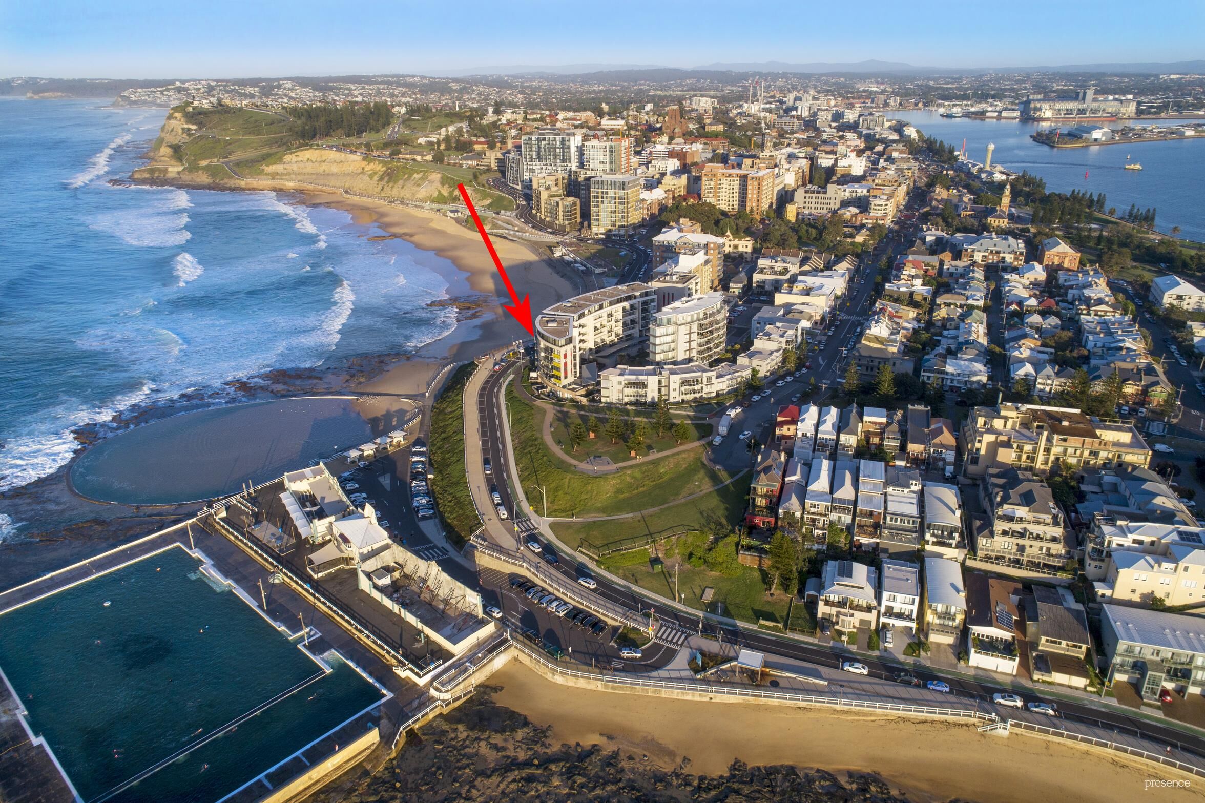 Offering full immersion in the city’s surf and café culture directly opposite Newcastle beach, this stylish dual level apartment drinks in endless ocean panoramas from the canoe pool to Dudley Bluff via King Edward Park. With its own street frontage, steps from the ocean baths, and direct access at the rear to the residents’ lap pool, it promises flawless executive living with an enviable holiday-at-home lifestyle. From here, stroll the scenic Bathers Way along the shoreline to popular eateries, King Edward Park and Nobbys beach and breakwall.