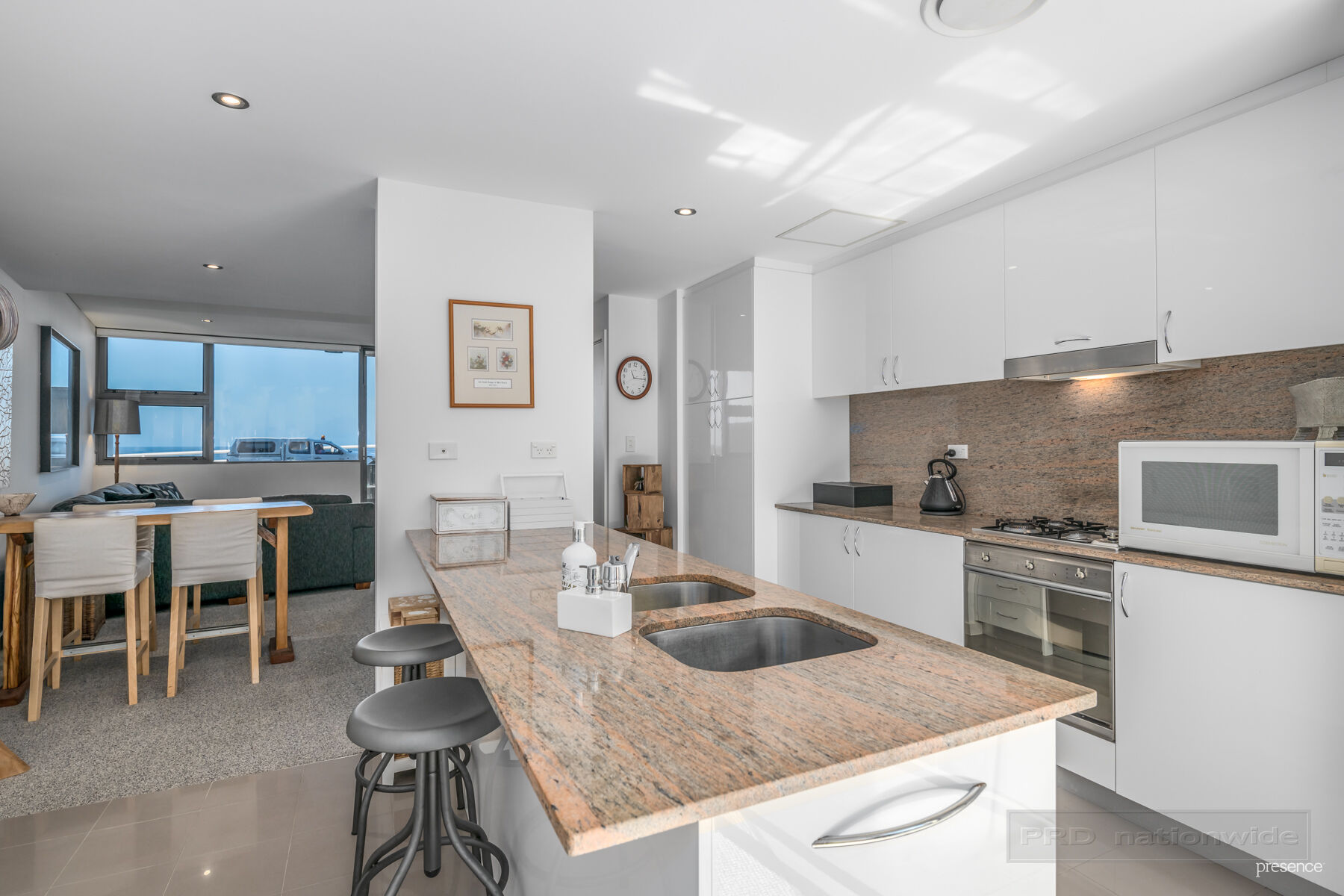Captivating from the minute you walk through the oceanside terrace and in the front door, it offers a light-filled open plan design with cooling sea breezes and an easy flow through to the private rear courtyard. With a desirable northerly aspect, it offers a sweet spot to relax or entertain alfresco. The granite and gas kitchen is eye-catching with Smeg appliances and glossy white cabinetry. And like the kitchen, the upstairs bathroom is well-designed and beautifully appointed with floor to ceiling tiling. Both bedrooms offer sanctuary status enhanced by built-in robes and sensational views of the ocean or residents’ pool.