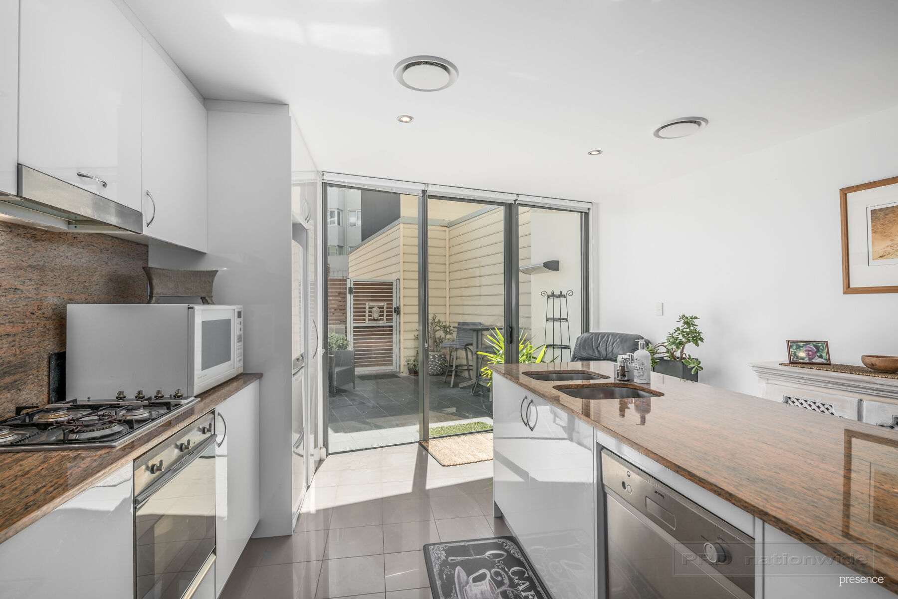 – Granite kitchen with Smeg gas cooktop, dishwasher and Euro laundry
