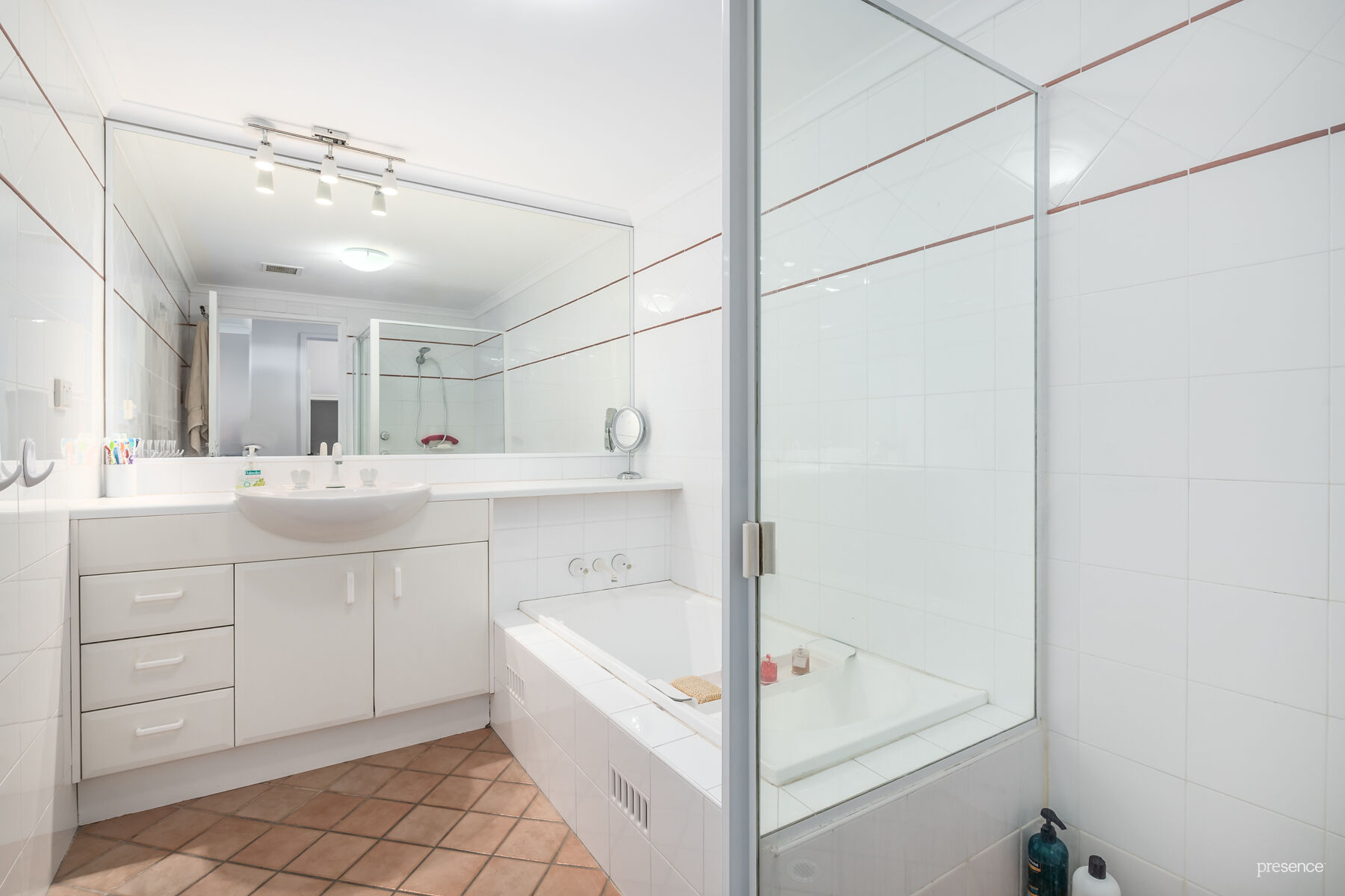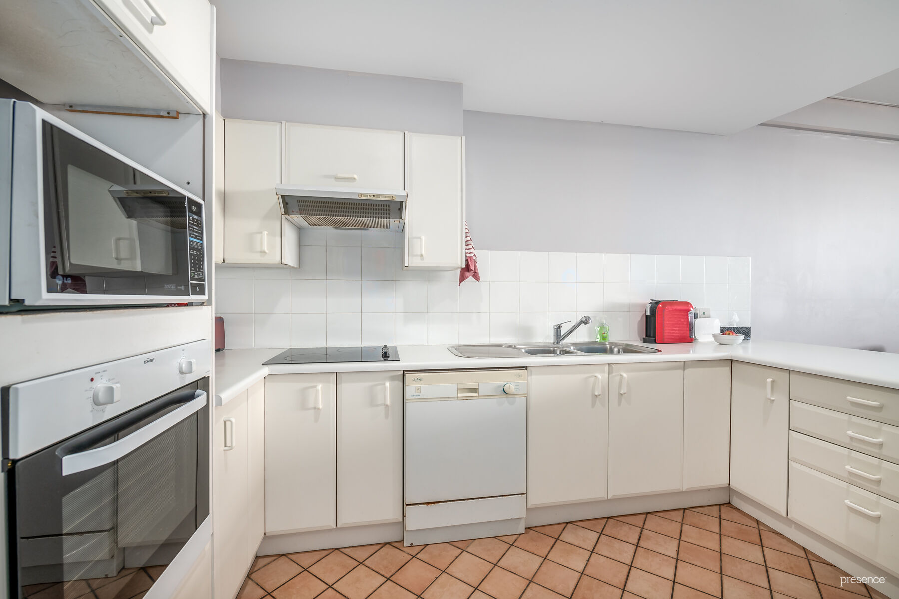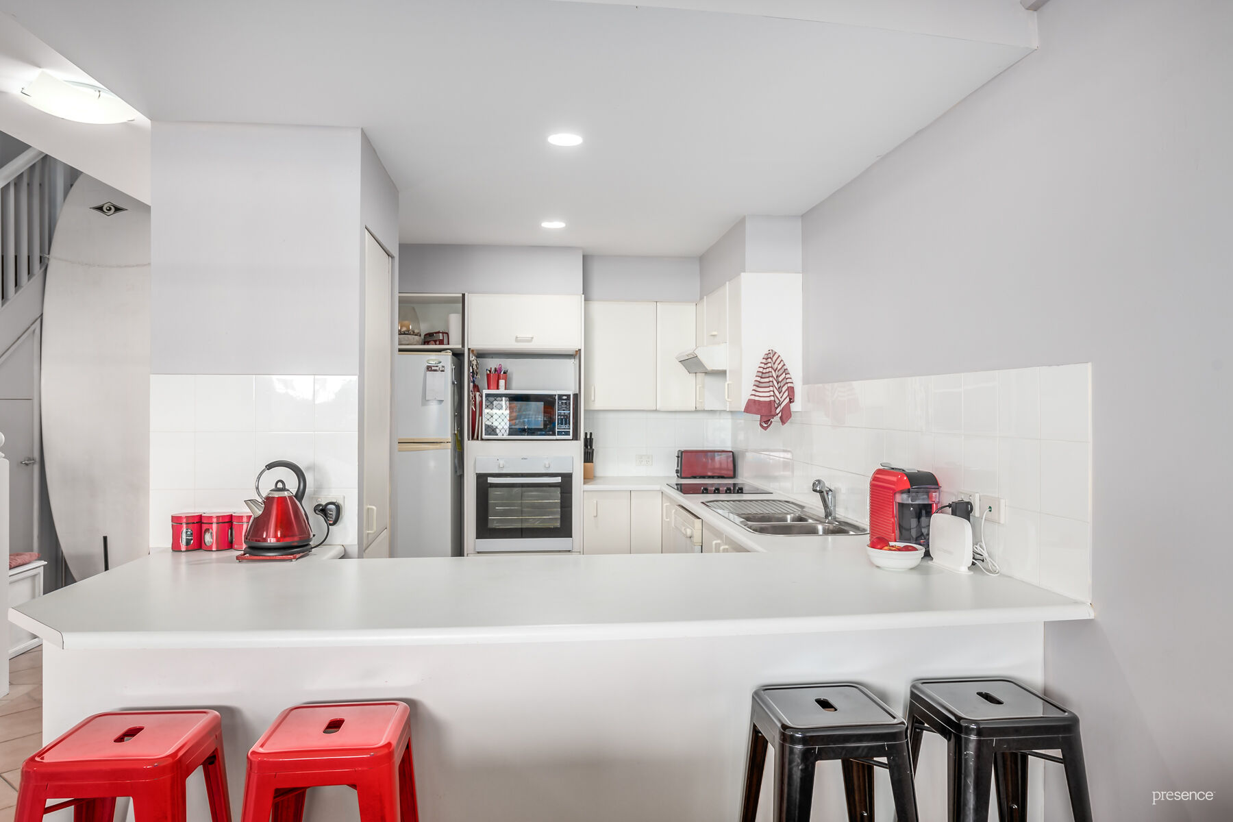 Introduced by its own street entrance into a courtyard, the home is completely private inside with large windows that draw in the light and maximise the sea breeze. Open plan living spaces connect directly at the rear to the residents’ BBQ area, swimming pool and full-size tennis court. Three bedrooms, the family bathroom and a study nook enjoy the privacy of the upper level with a sea-view balcony a superb spot to sit with the morning sun on your face.