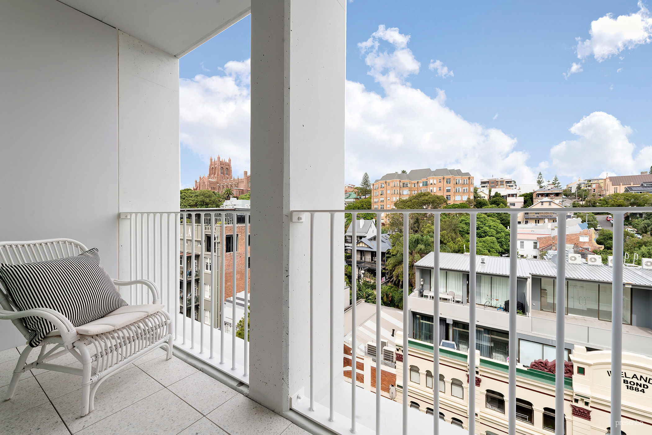 Enjoying an elevated position on the eighth floor of the Perkins & King building, this brand new luxury two-bedroom apartment showcases cityscape views that include the iconic Christ Church Cathedral.