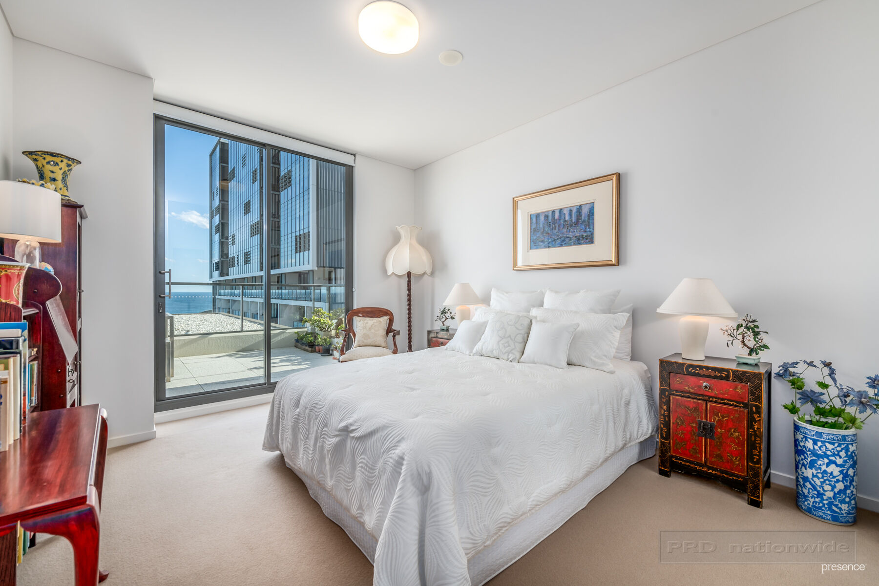 – Master bedroom links to the terrace through floor-to-ceiling sliding doors