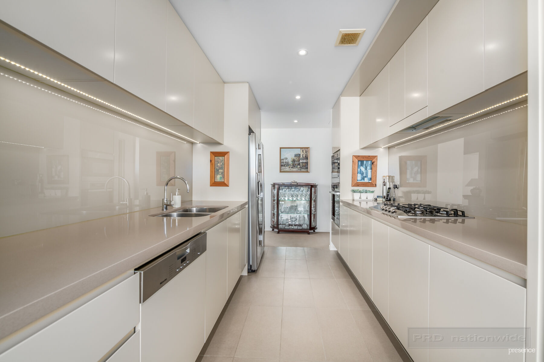 – Galley kitchen with stone benchtops, Miele integrated dishwasher, gas cooktop, electric oven and microwave