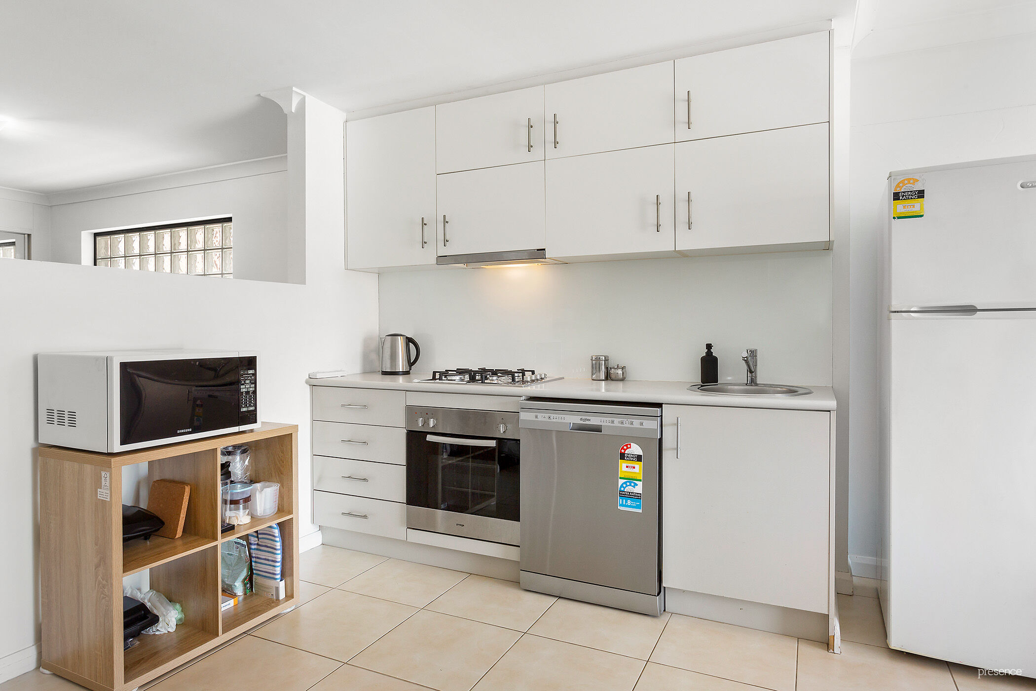 Perfect for both singles and couples, the generously proportioned bedroom enjoys a large built-in-robe. From here, an open plan layout flows to a modern kitchen and meals area, where you’ll find sleek stainless-steel appliances including a dishwasher and gas cooktop, ready to serve all of your culinary needs. The adjoining spacious lounge features a perfectly positioned air-conditioner and large slider to the balcony, flooding the living room with natural light and providing year-round climate comfort – and whether you’re looking to sip your morning coffee or set up your yoga mat, the alfresco balcony will be your go-to spot in any weather.