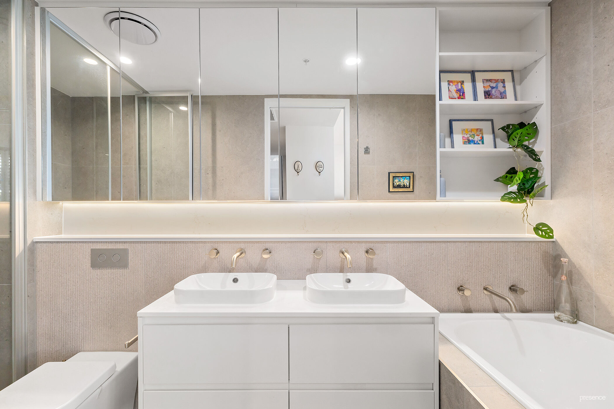 Additional features include ducted air conditioning, double-glazed windows, multiple storage cupboards, and two car spaces with storage cages conveniently located next to the lift. Residents enjoy exclusive access to a stunning rooftop common area, complete with BBQs, comfortable seating and breathtaking panoramic views. There are also two fully furnished community rooms – one on the ground level, and another on level 7 of the middle tower. Further amenities include a private, fully equipped gym, a secure bike storage room and beautifully maintained lush gardens.