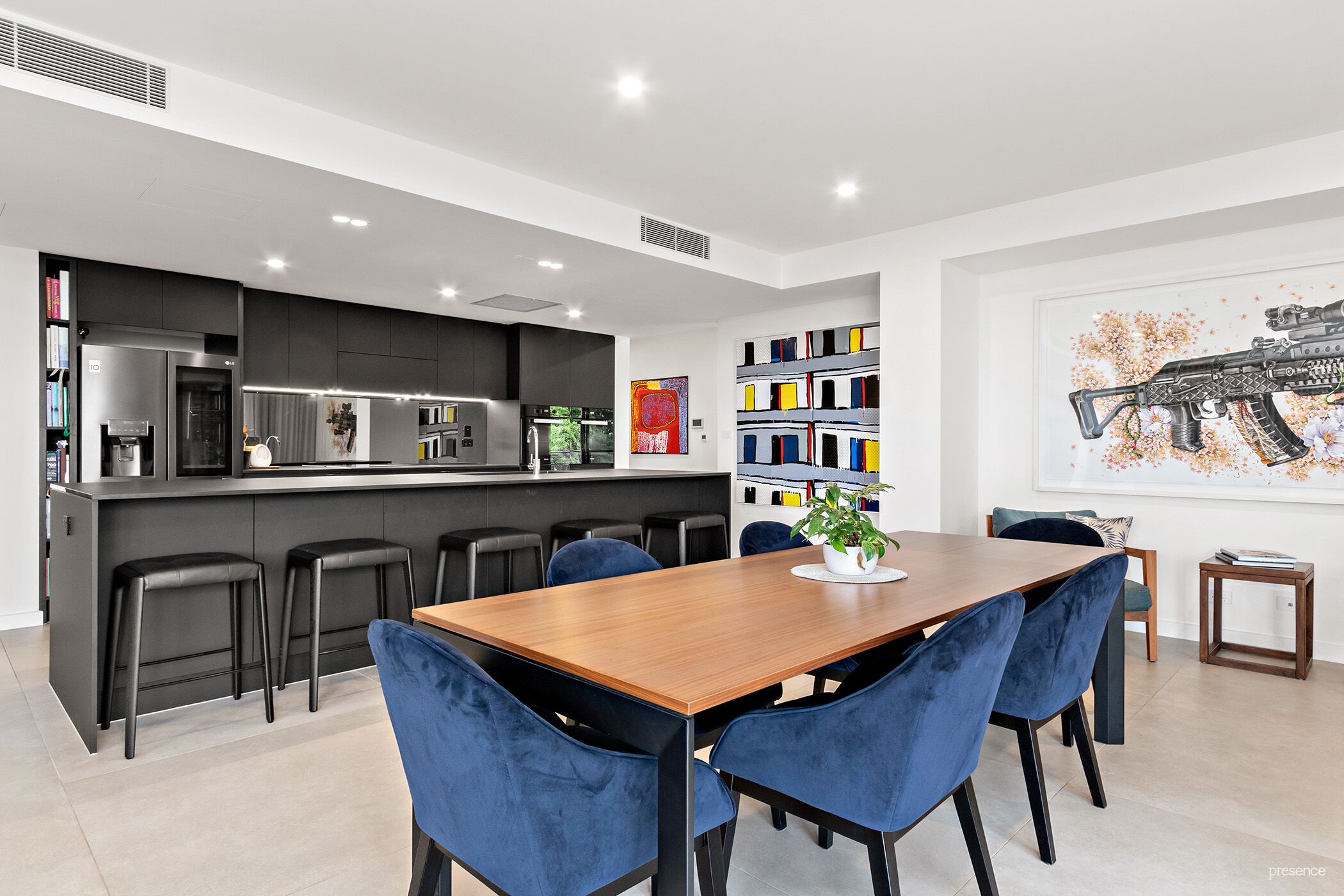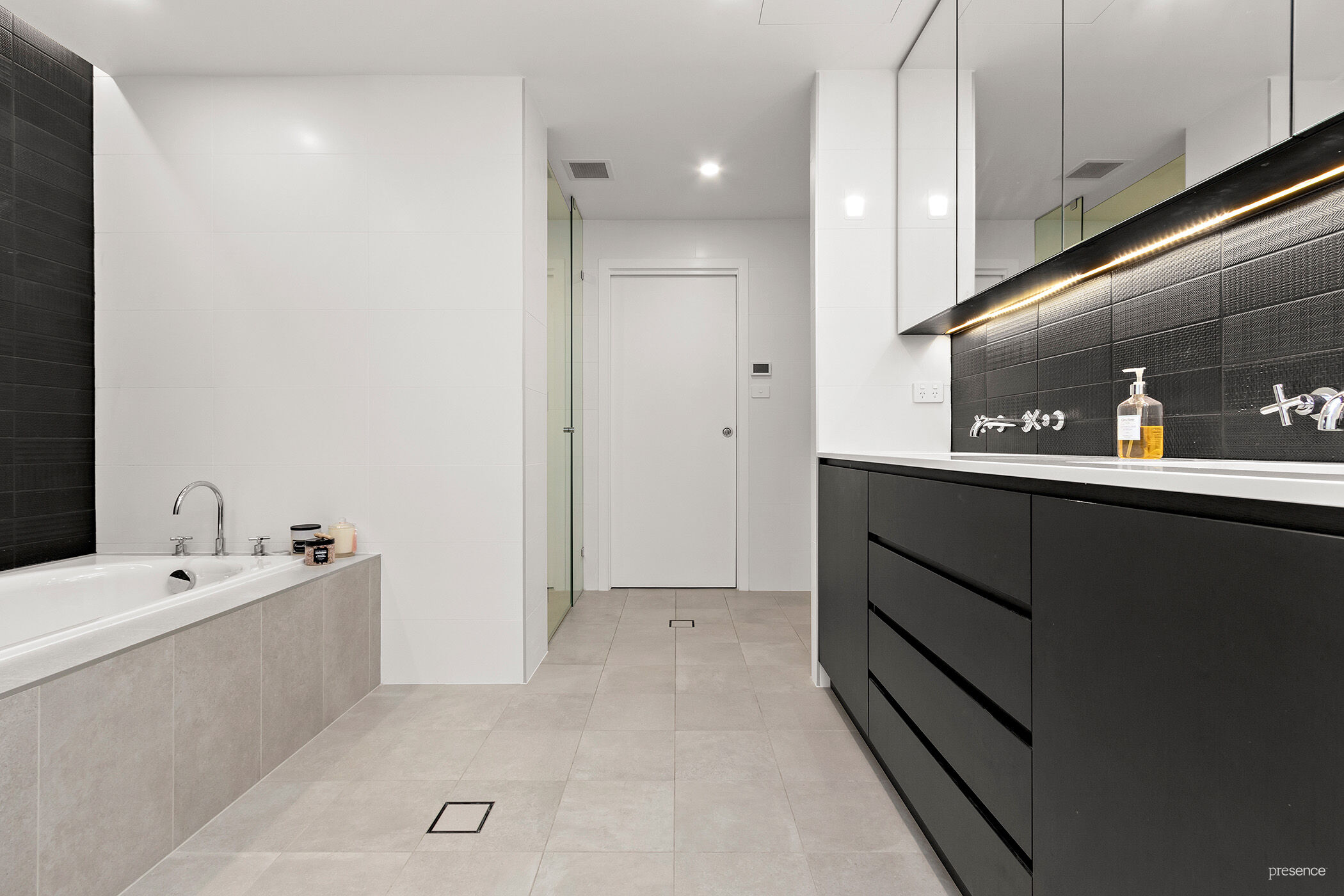The spacious floorplan luxuriously accommodates three large robed bedrooms, three bathrooms, including a hotel-worthy 2-way master ensuite with double shower and bath. Every detail has been carefully considered to create a stunning inner-city home that exudes global sophistication.