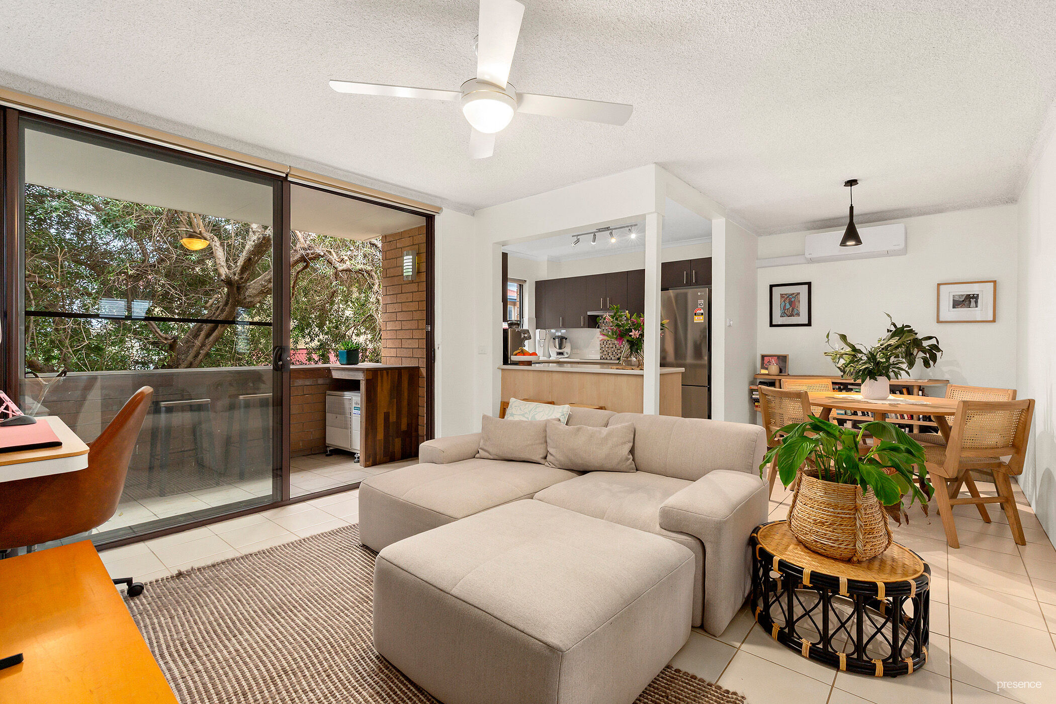 • Generous open-plan living and dining with reverse-cycle air conditioning and ceiling fan for year-round climate comfort.