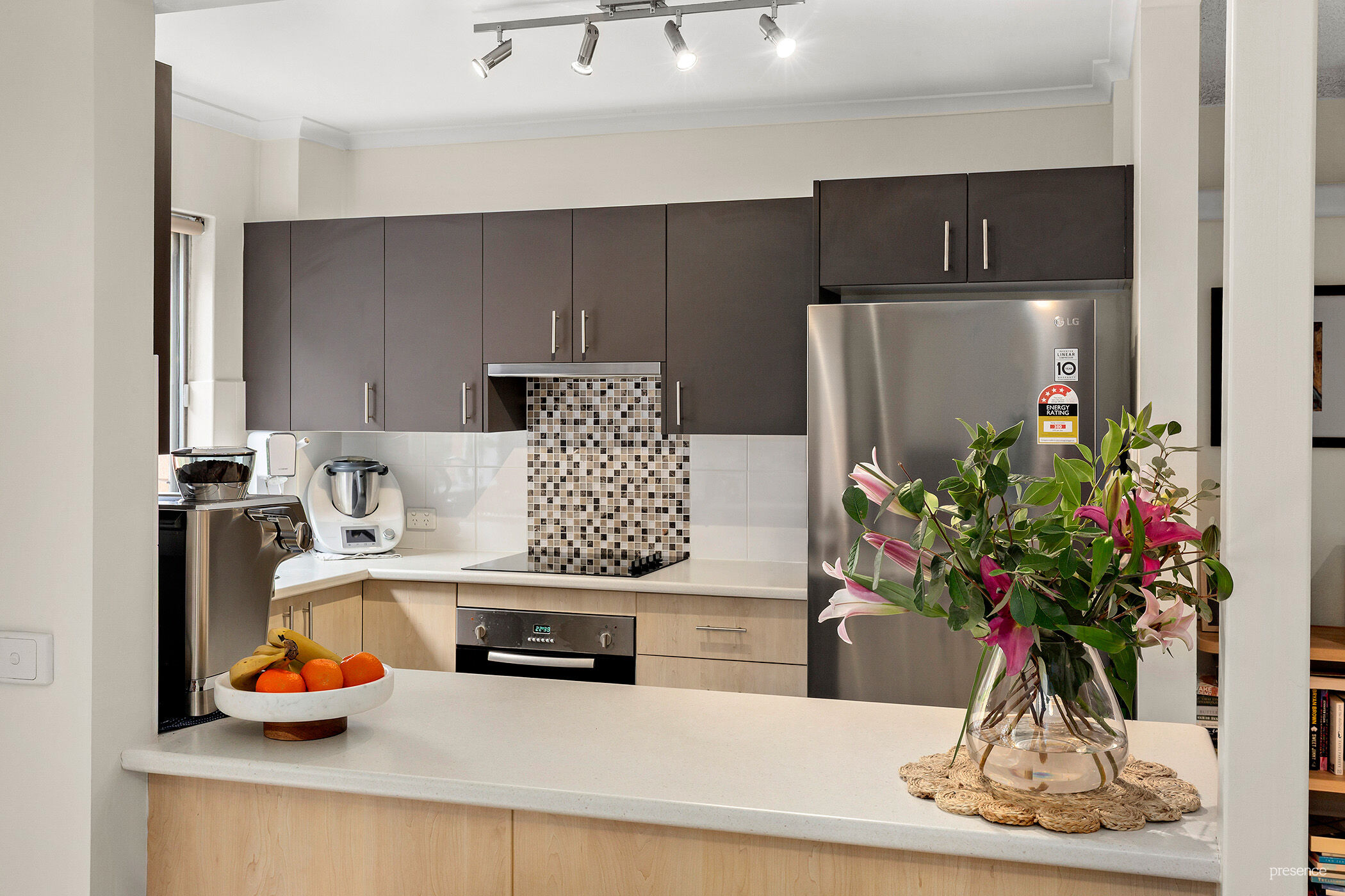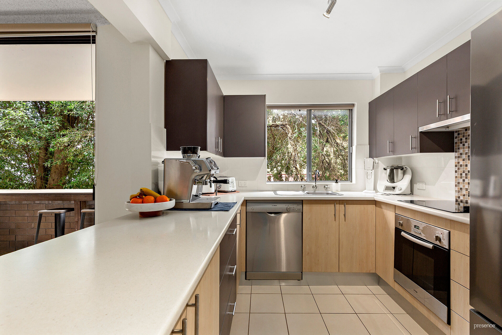 • A smart, modern kitchen with stainless steel appliances, Bosch dishwasher and plenty of bench and cupboard space.