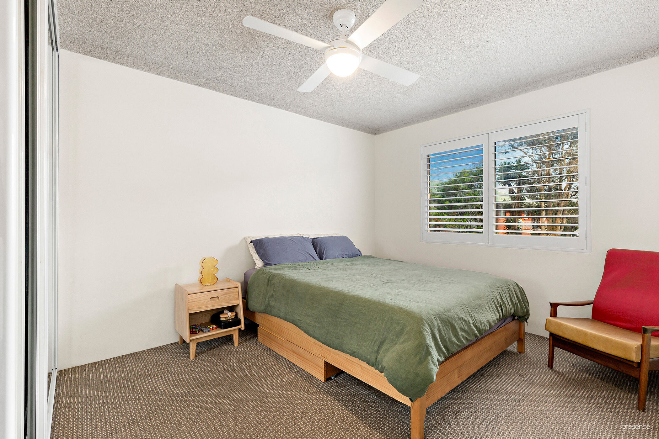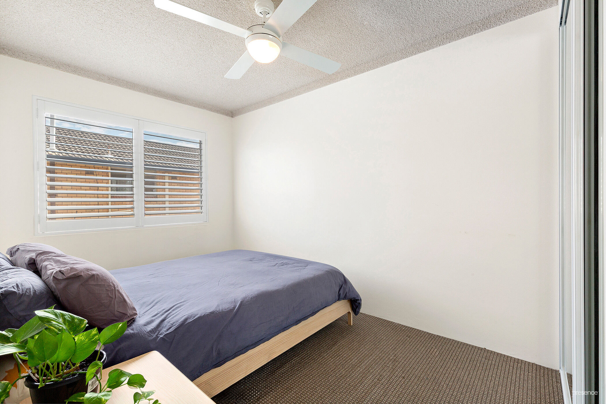 • Two good-sized double bedrooms, each equipped with elegant plantation shutters, built-in wardrobes and ceiling fans.