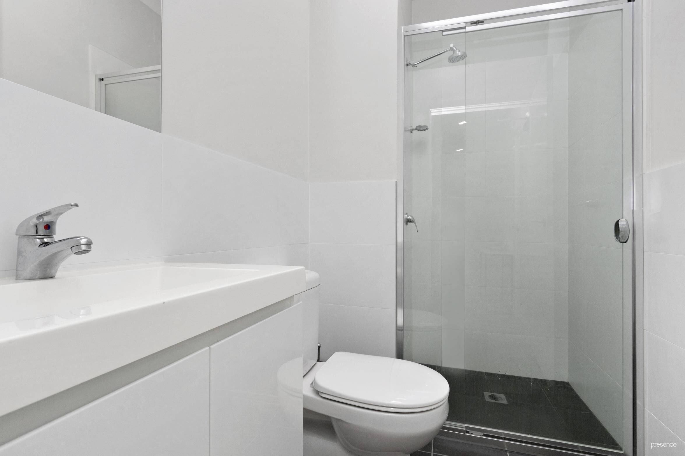 The chic kitchen boasts streamlined finishes, an integrated pantry, and a single drawer dishwasher for easy clean-up, blending functionality with contemporary flair. At day’s end, unwind in your spacious bedroom featuring a mirrored built-in robe that maximises both storage and the sense of space. The crisp, modern bathroom is elegant and low maintenance, making life even easier.