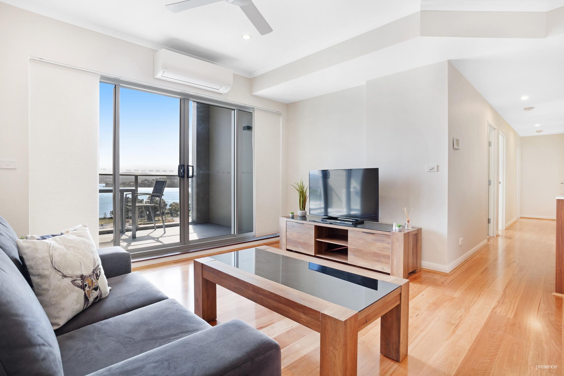 ‘Shearwater’ is located just a stone’s throw from the shores of beautiful Lake Macquarie. Positioned on the fourth floor and immersed in a stunning panorama, this contemporary 3-bedroom, 2-bathroom apartment is on the doorstep of the suburb’s boutique stores, coffee shops and alfresco dining. Stylish in its design and spacious in its layout, it offers an impeccable home with flowing interiors, great air cross-flow and a functional floorplan that takes full advantage of the lake views.