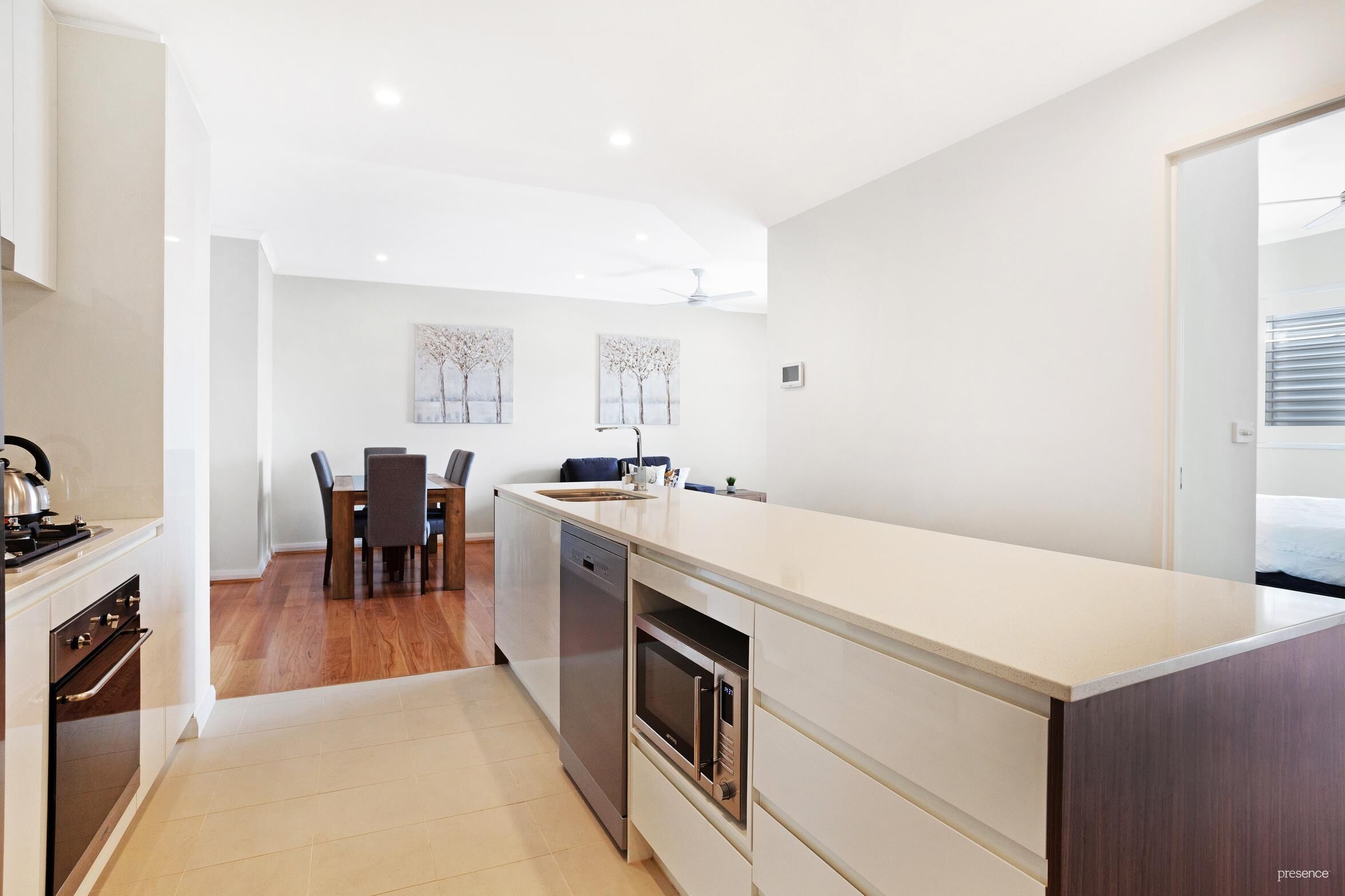 This pristine 4th floor apartment is flawless in its presentation, highlighted by a warm neutral colour palette with a mix of timber floors and carpet underfoot and air-conditioning to keep things comfortable. Wander freely from living to outdoors, where a spacious balcony is the perfect spot to relax or entertain alfresco while you take in the surrounding ambience and lake views. Back inside, the streamlined kitchen features a huge island with stone benchtops, Smeg stainless steel appliances and touch-catch cabinetry, while three robed bedrooms are served by two contemporary bathrooms and two car spaces and a storage cage ties the bow.