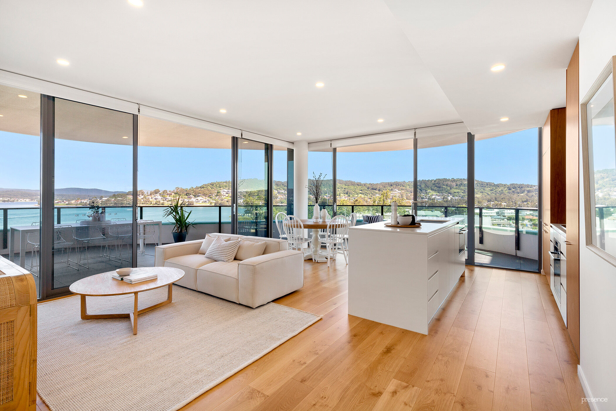 – Breathtaking panoramic lake views from the wraparound balcony and open living space