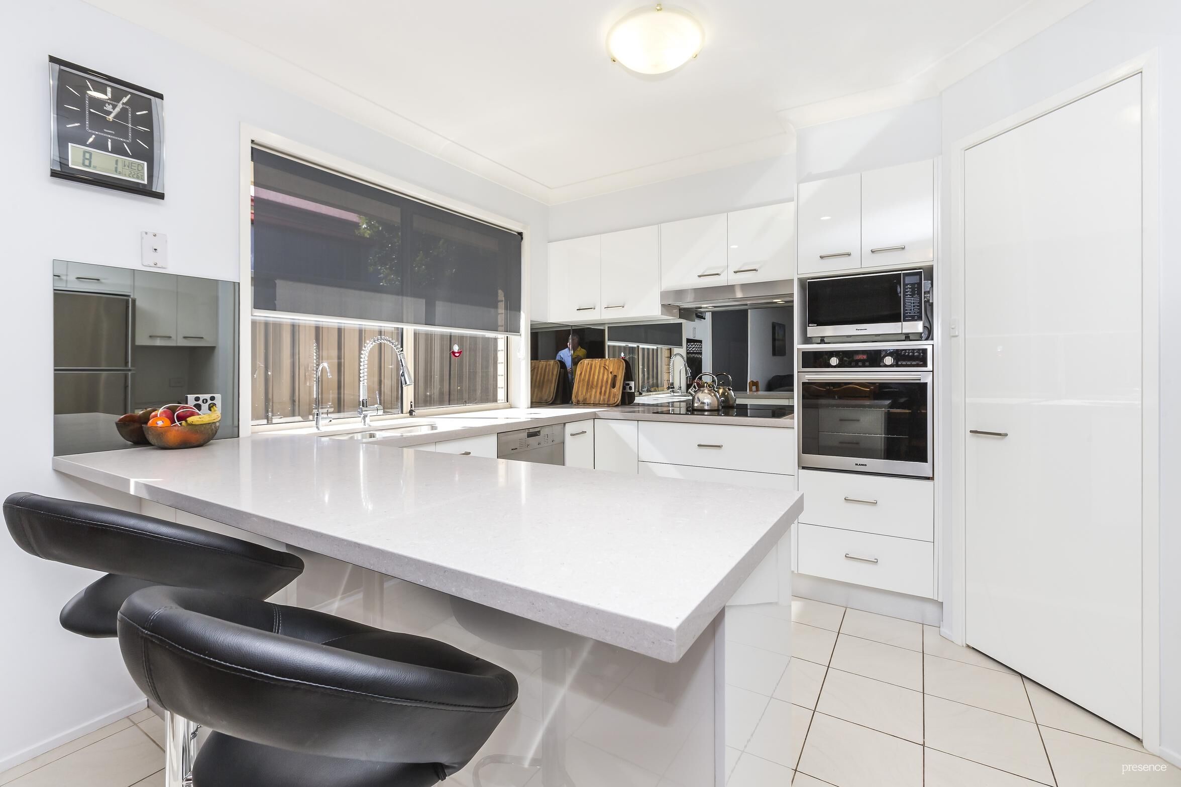 – Smartly updated kitchen with stone benchtops, Miele dishwasher, induction cooktop and walk-in pantry