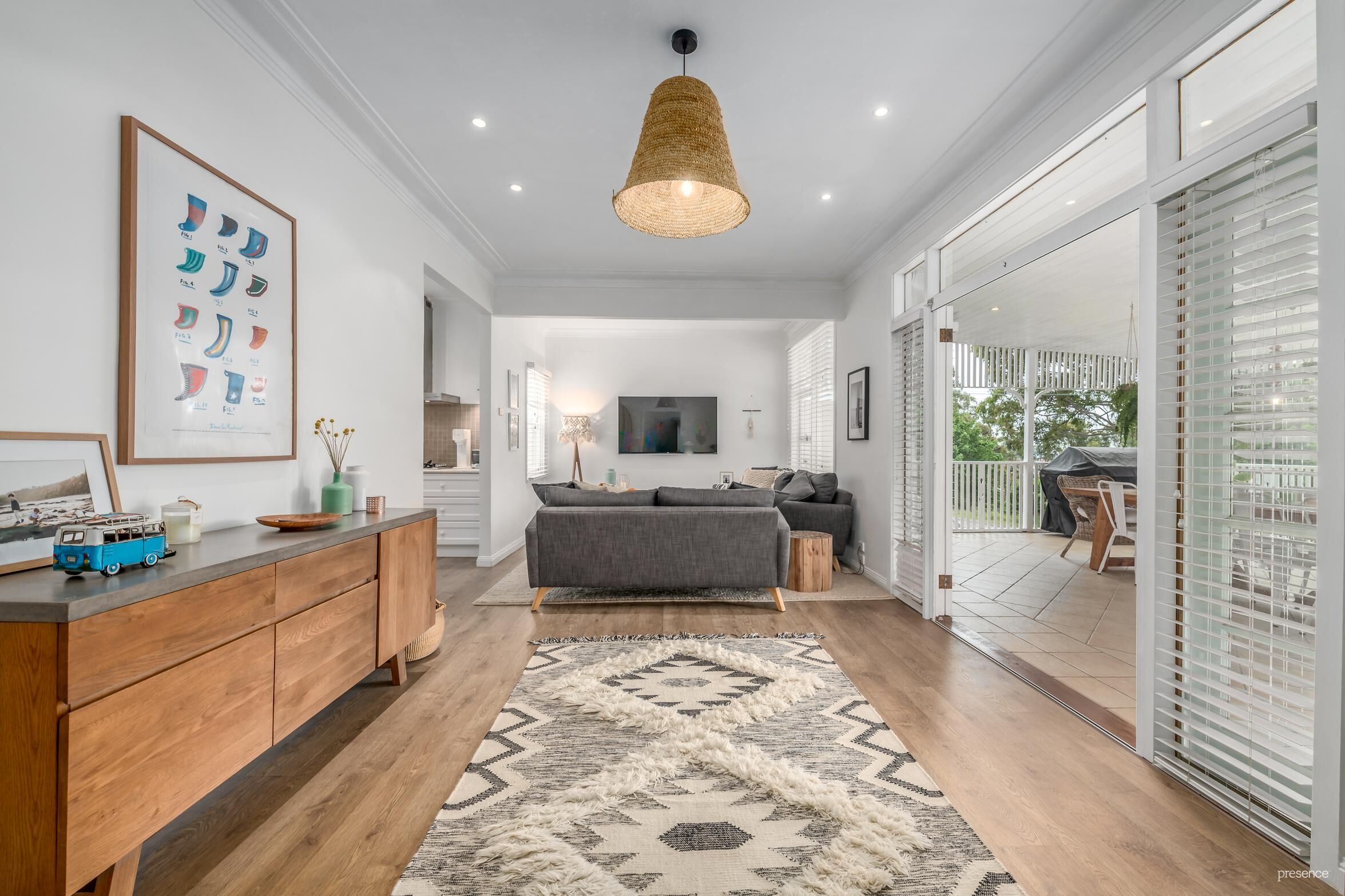 Flaunting the notion of indoor/outdoor living to great effect, this comfortable Hudson built home is tucked away in one of the area’s quietest and most serene streets, where you can step out the front door directly on to the Fernleigh Track. Crisp, neutral décor, new floor coverings and immaculate styling complement the airy, coastal aesthetic of the property which sits elevated above its double carport capturing a verdant leafy outlook.