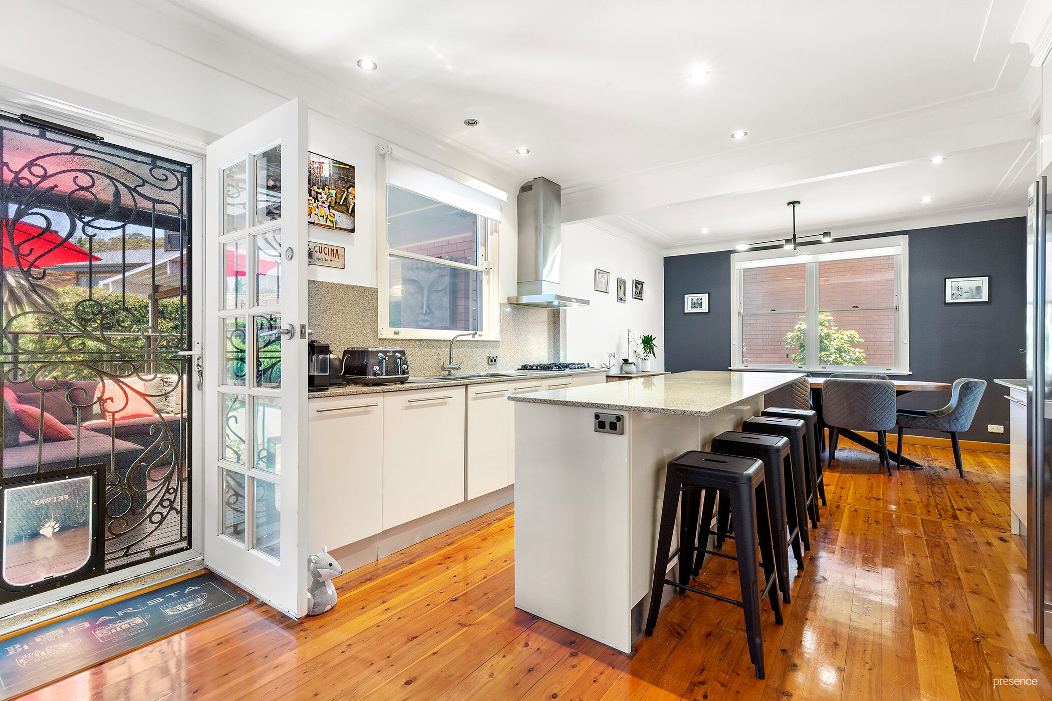 What was a traditional suburban house, just two minutes drive to the fabulous Kotara shopping and dining centre, is now reminiscent in parts of a French apartment with the black cabinetry of its walk through pantry, it’s black tiled main bathroom, patterned feature wallpaper and sliding glass French doors. Curl up on the couch with a book or watch a movie under the gorgeous timber and glass French windows in your front room overlooking the wide, quiet street and feel the stress of this crazy year just melt away.