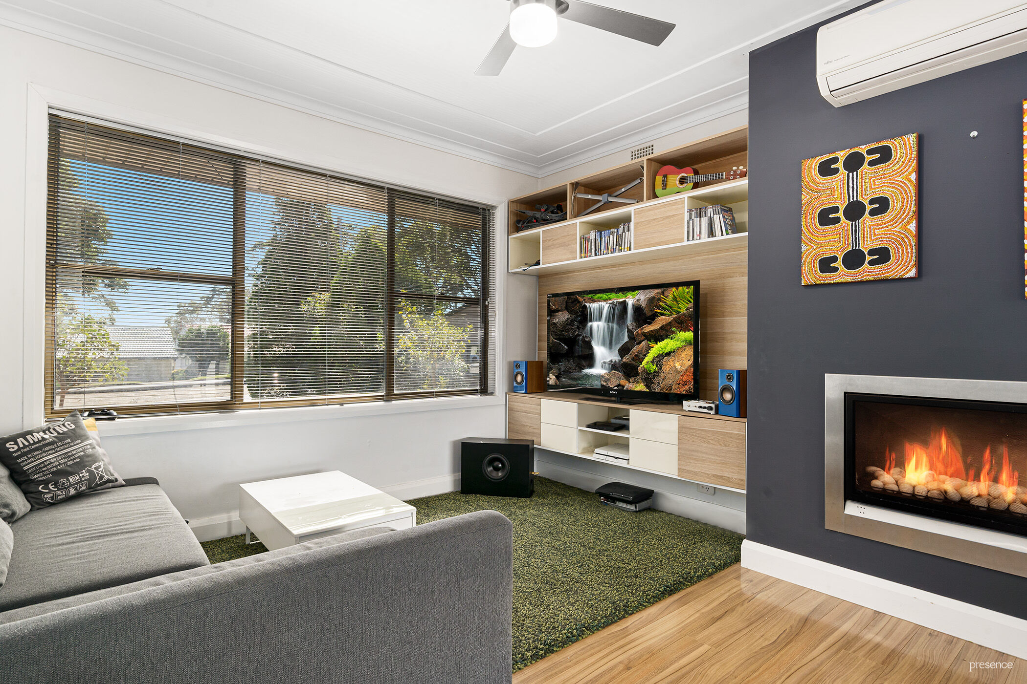 – Split system air conditioning and ceiling fans through the home