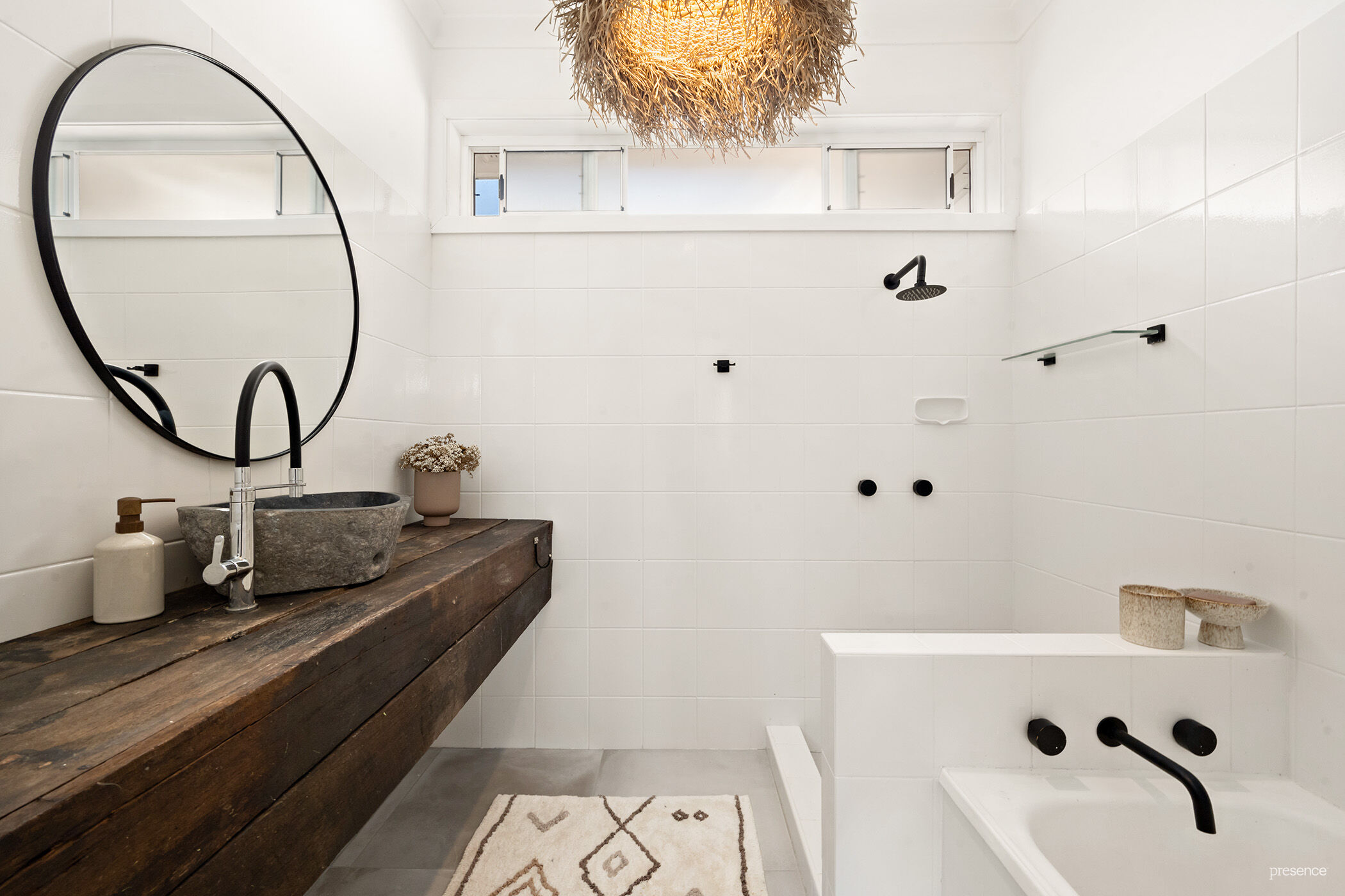 With all the up-to-the-minute design trends represented along with some unique, custom features you have nothing to do with this 3 bedroom, 2 bathroom home other than move in! Meticulous attention to detail has seen the current owners create an incredible abode that is was clearly an artistic vision but still remains understated and chill. There are simply too many features to list but do not miss the neutral Shaker style contemporary kitchen, the rough-hewn timber vanities perhaps inspired by a 5 star Balinese resort, the subtle wood paneled walls and the striking timber ceiling fan and plantation shutters. Alongside these uber-modern additions sit the beautiful original features of this home – the gorgeous double hung windows, French doors and ornate cornices to name just a few.