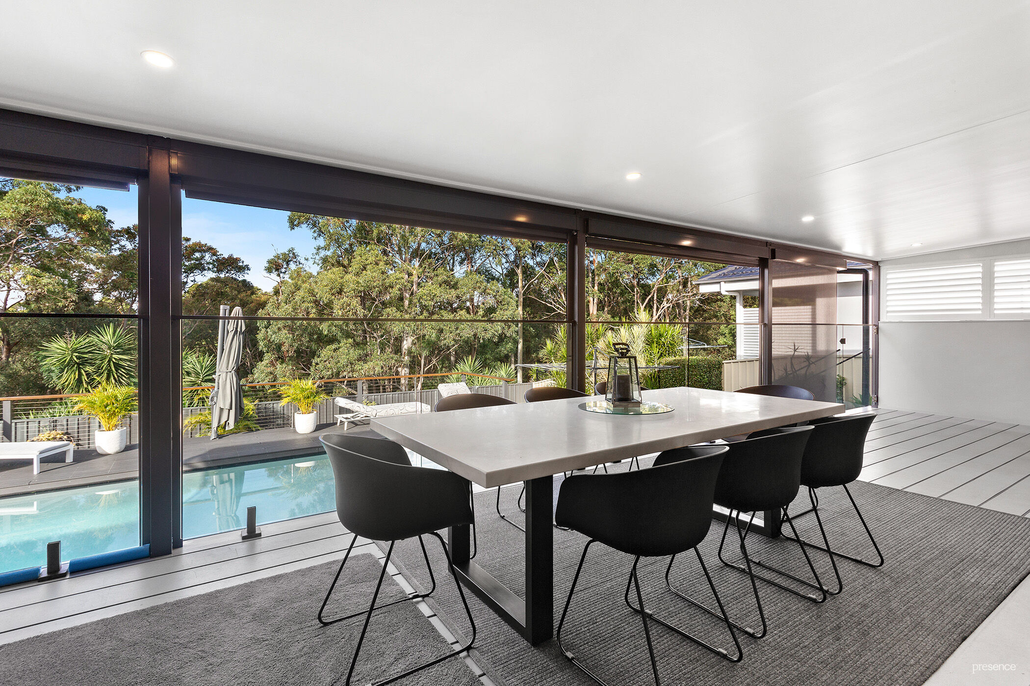 – 14m x 3.6m covered alfresco with glass balustrading & Ziptrak blinds for year round use