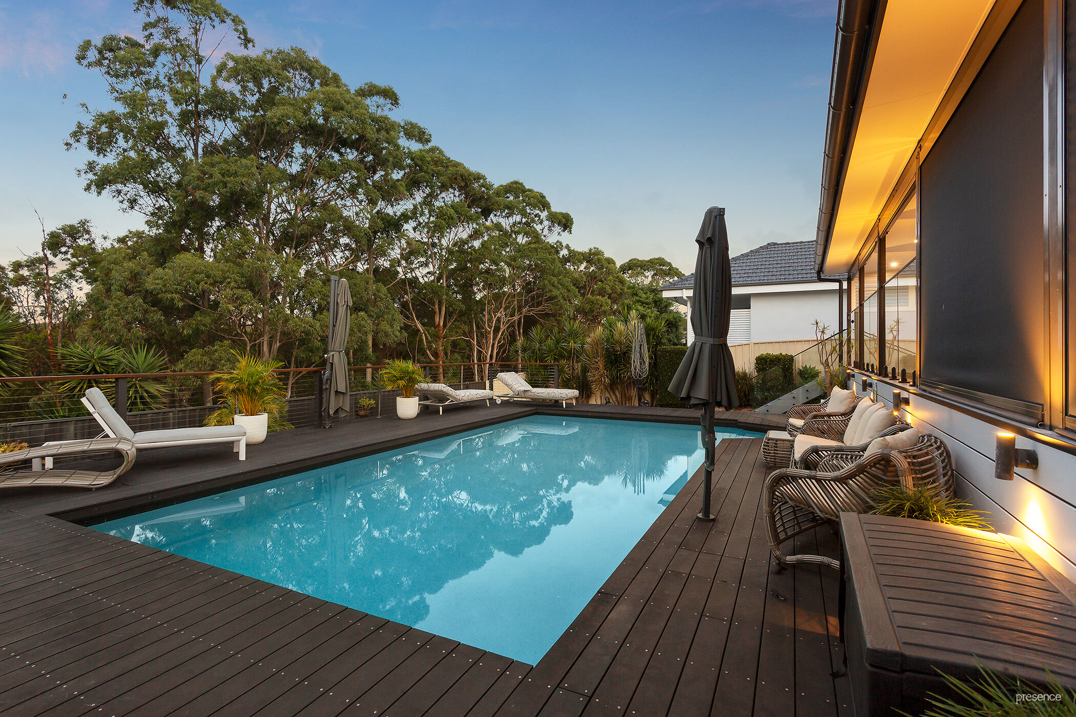 Set against the tranquil backdrop of lush bushland filled with the melodious tunes of local birdsong, this beautiful Hudson-built home harmoniously blends privacy and convenience. Start your day sipping coffee on your secluded front deck or bask in the morning sun on the spacious rear verandah, overlooking the calming greenery. Afterwards, enjoy a few laps in the pool or catch some rays as you relax poolside. There is driveway parking for 2 cars + oversized single garage with attic storage.