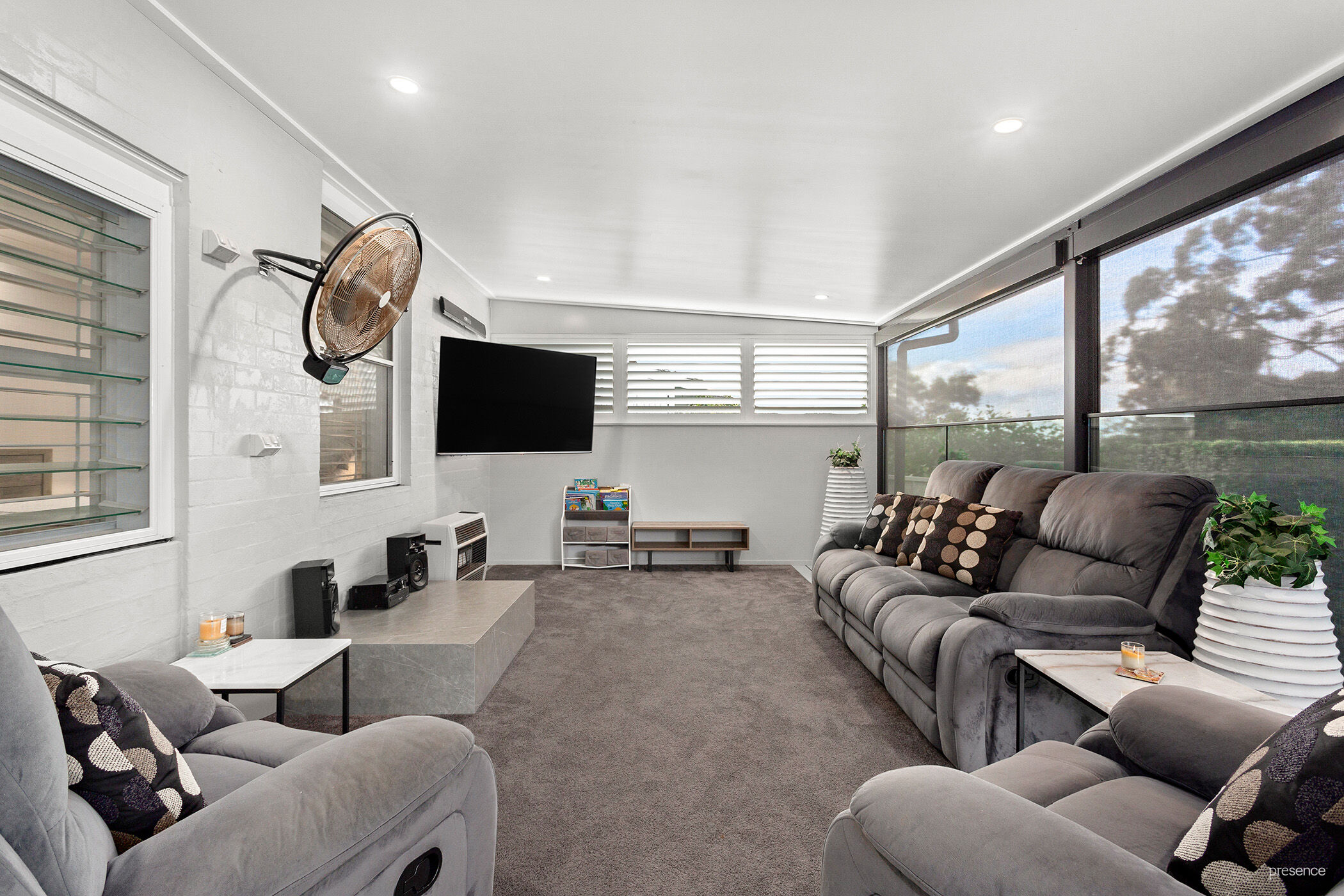 The house features a free-flowing open plan living and dining area, four robed bedrooms, and two modern bathrooms, centred around a spacious Caesarstone kitchen. The rear verandah, complete with Ziptrak blinds and glass balustrading, promises to be your favourite spot for everything from family gatherings to peaceful alone time, ensuring comfort in any weather.
