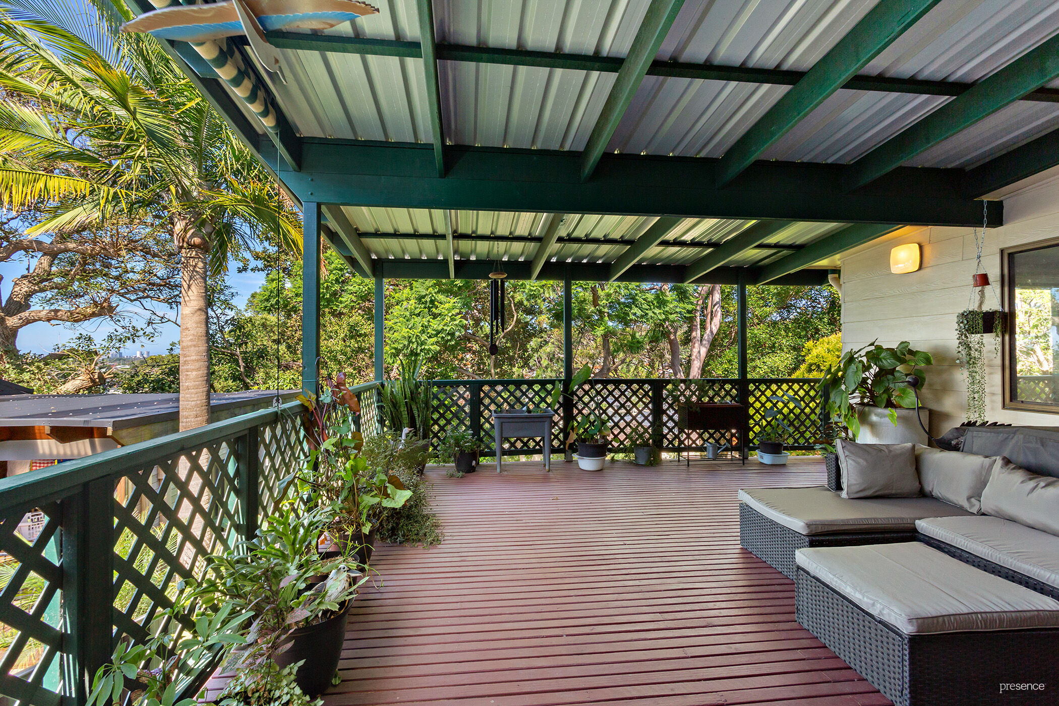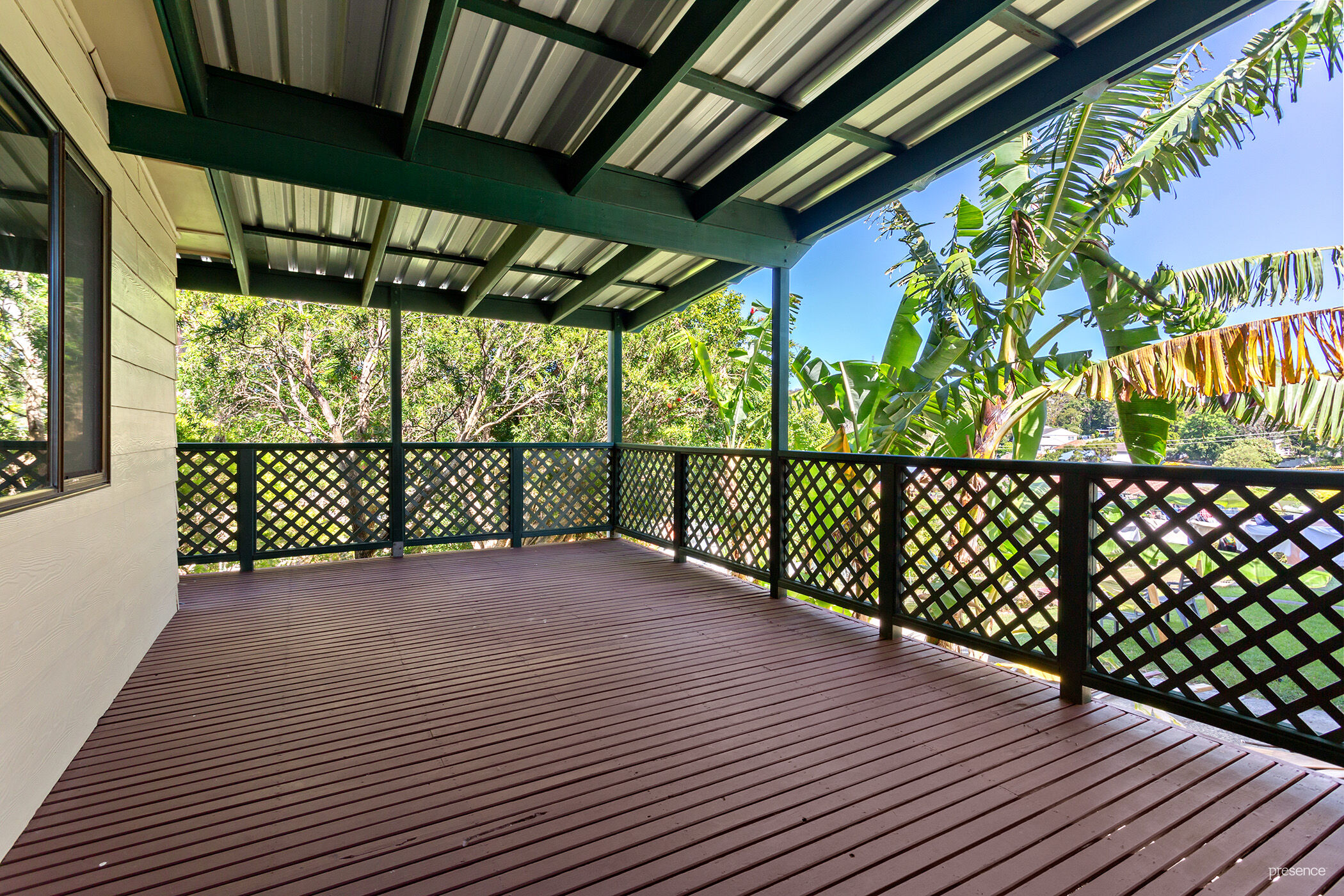 – Leafy aspect from the elevated outdoor entertaining area and huge backyard