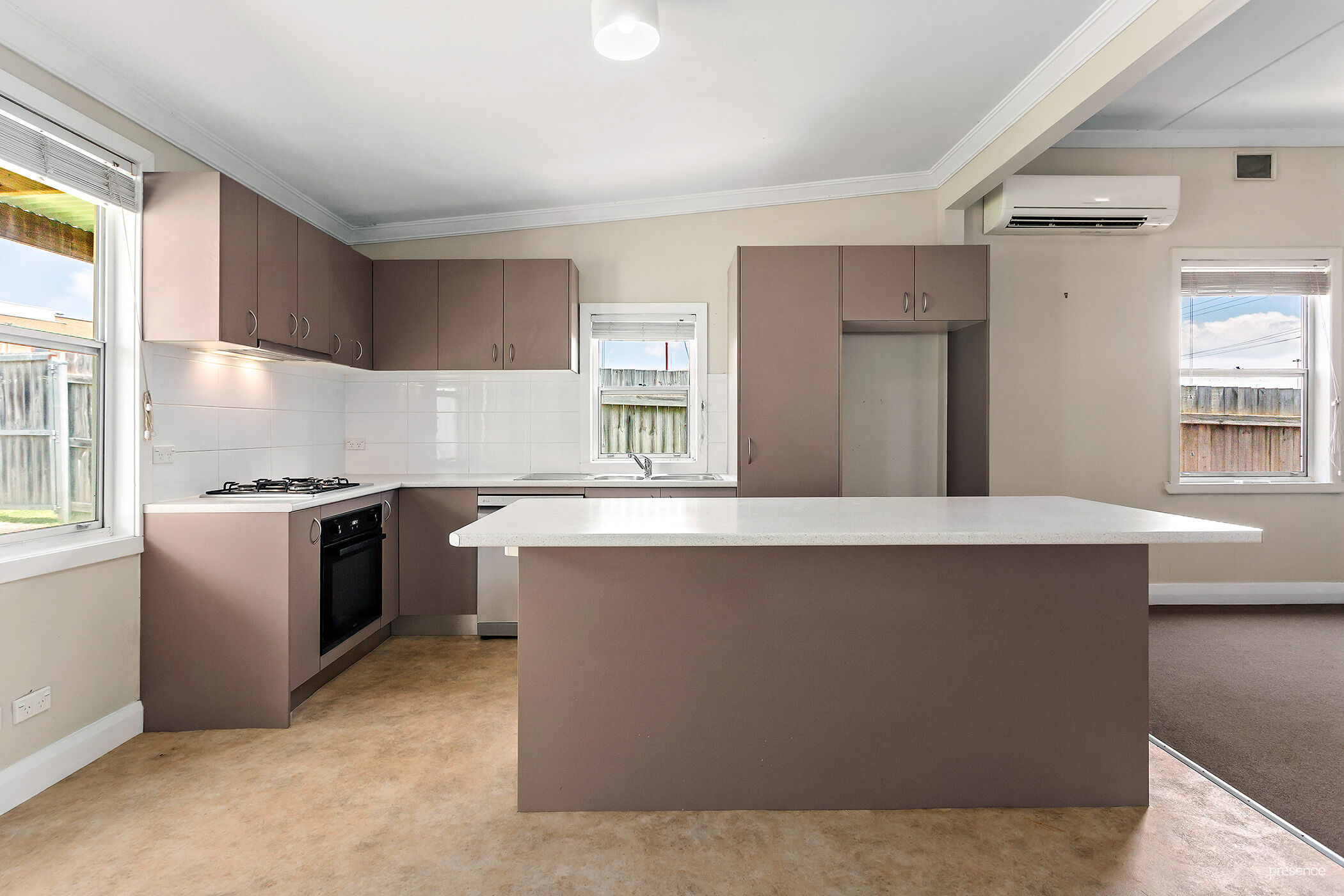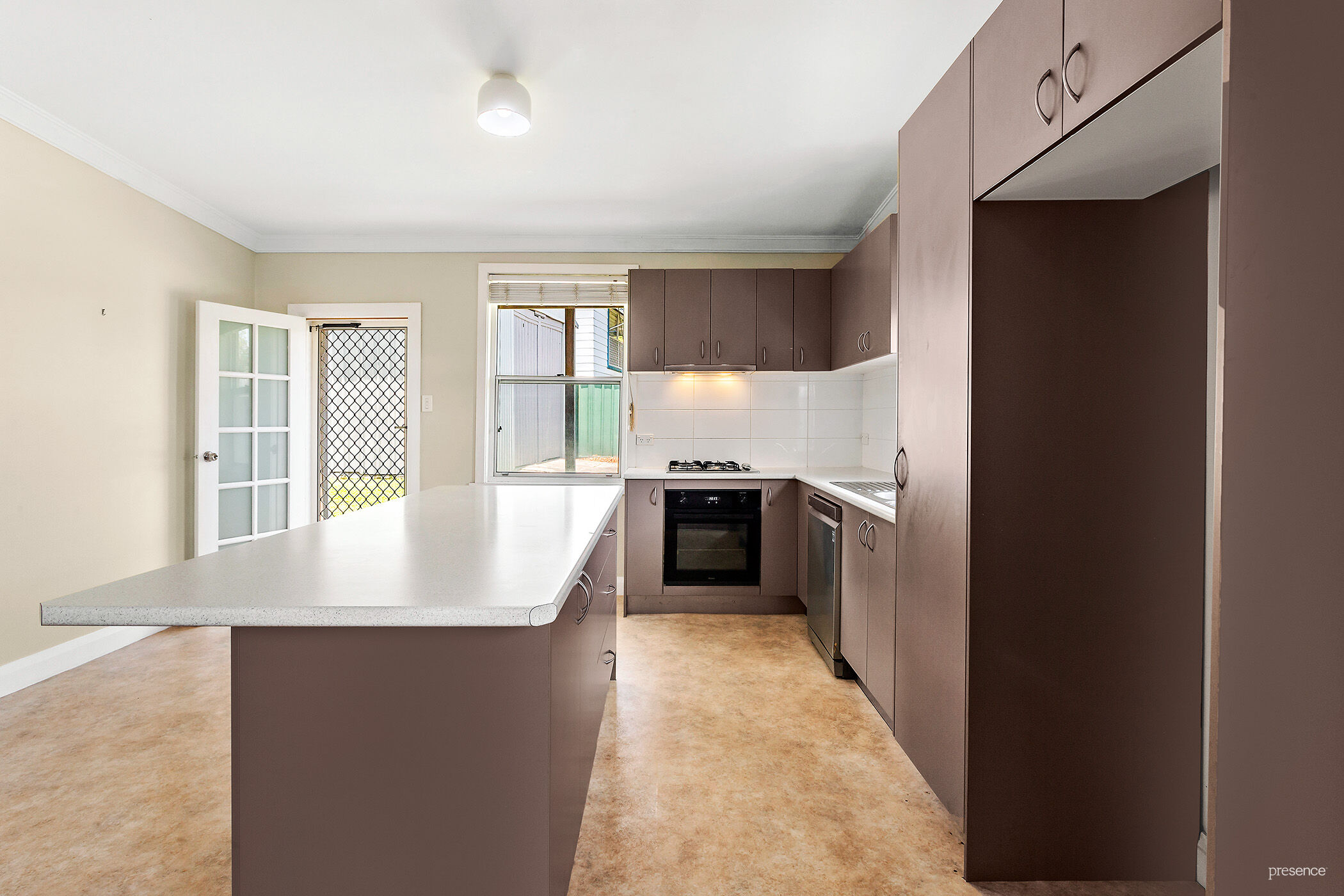 – Modern kitchen with expansive island, dishwasher, gas hob, pantry, abundant electrical points, and masses of bench and cupboard space.