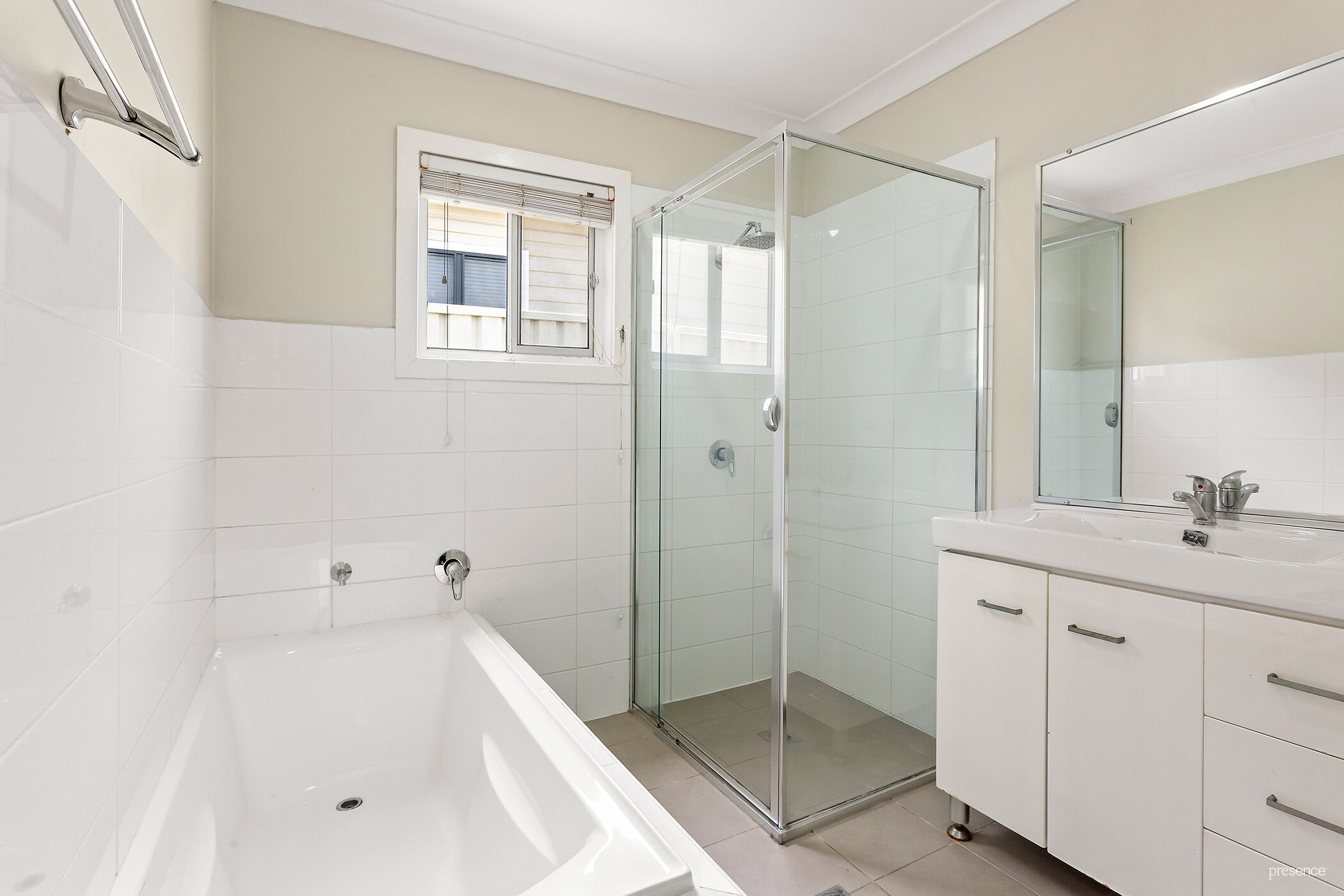 – A bright, tiled bathroom with bath and shower as well as a separate laundry.