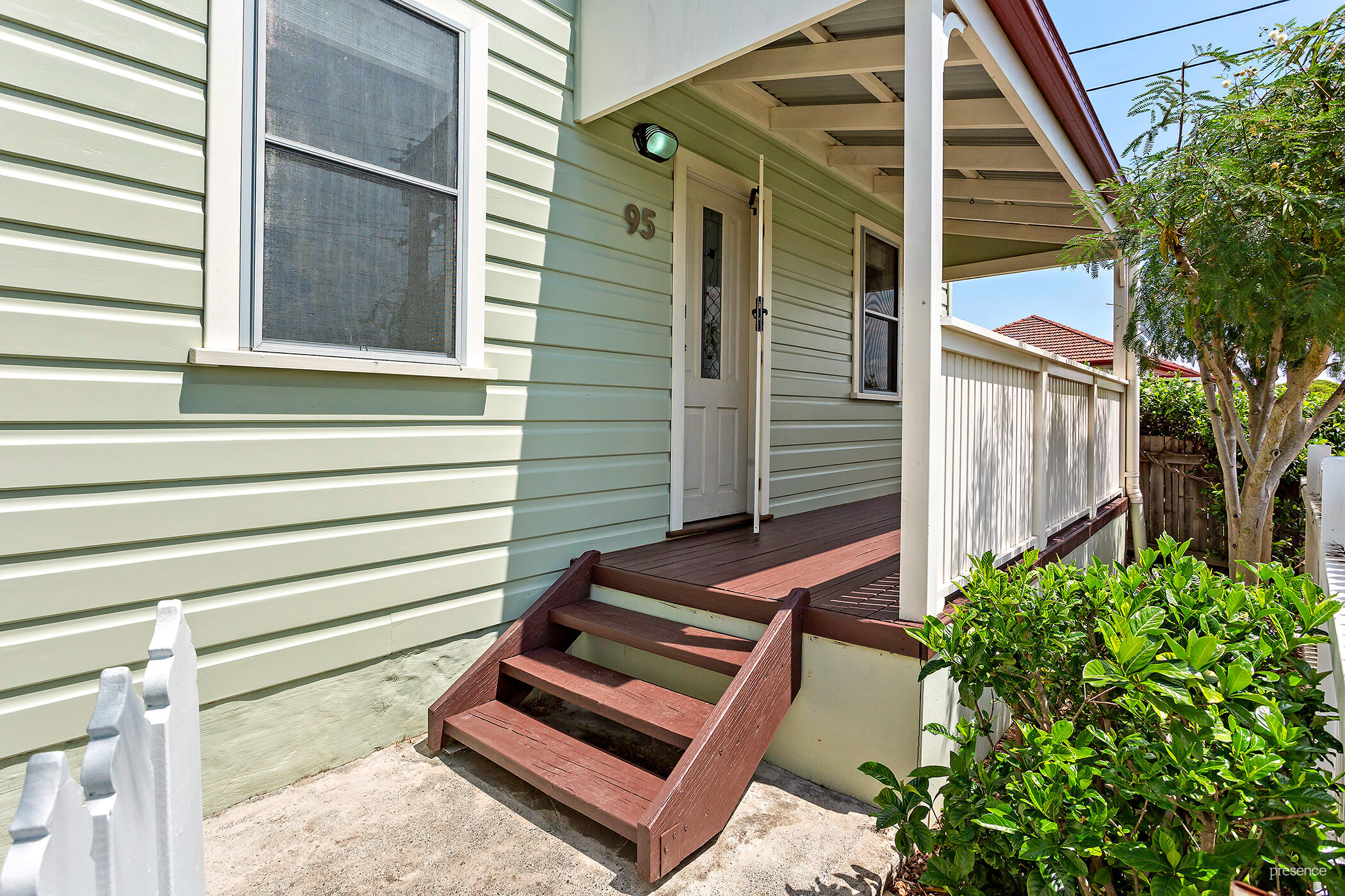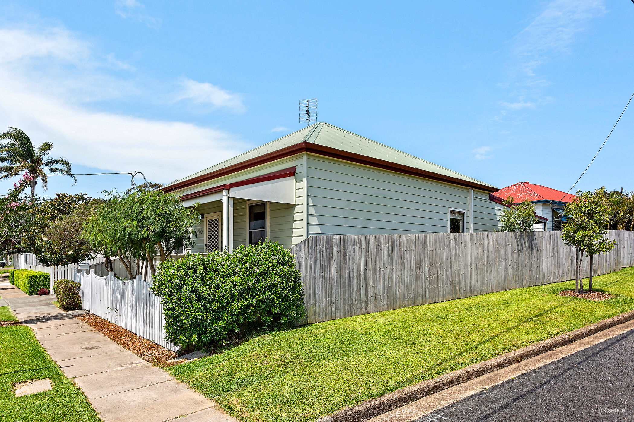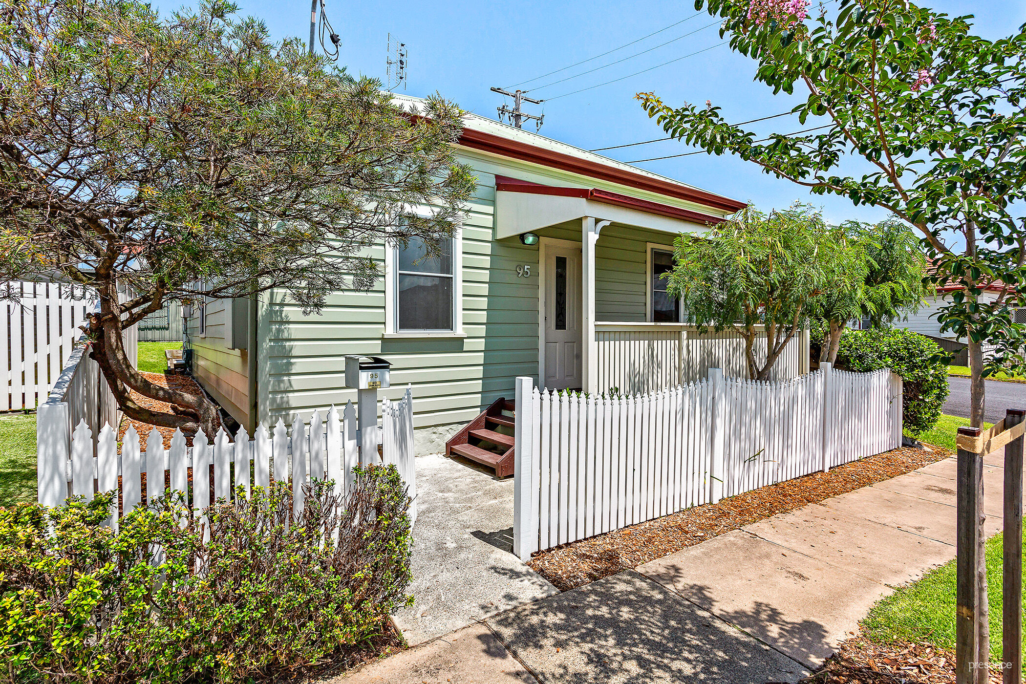 – Centrally located, character home with white picket fence and delightful front porch framed with star jasmine and leafy foliage.