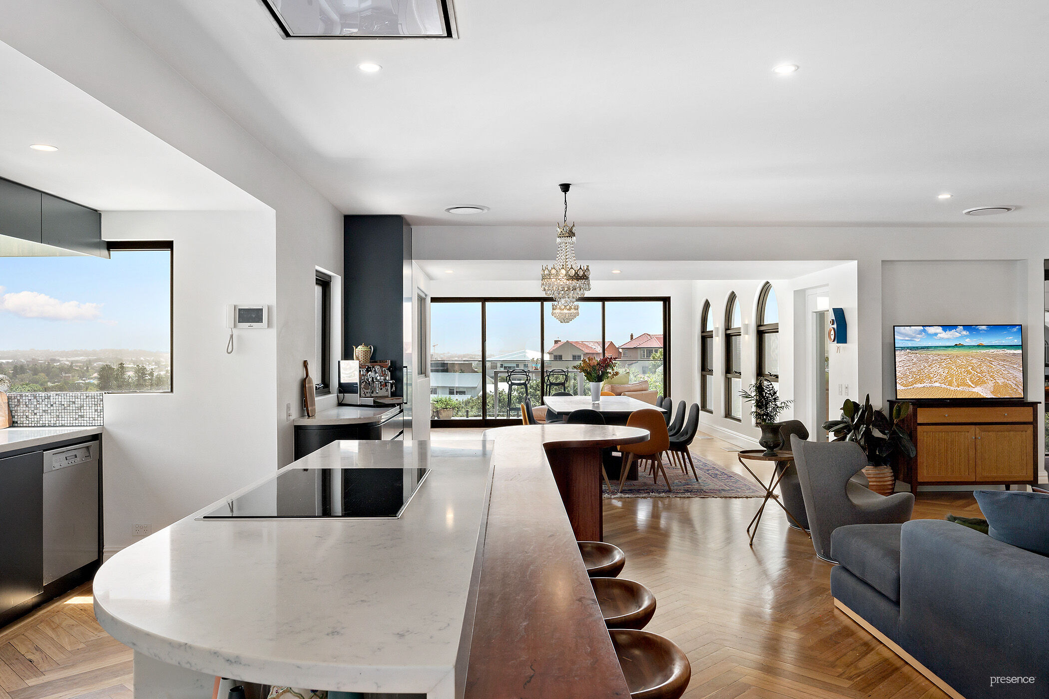 Rarely does a home so easily capture the imagination as this stunning family retreat, where Art Deco character and contemporary finesse converge against a mesmeric coastal and city backdrop.