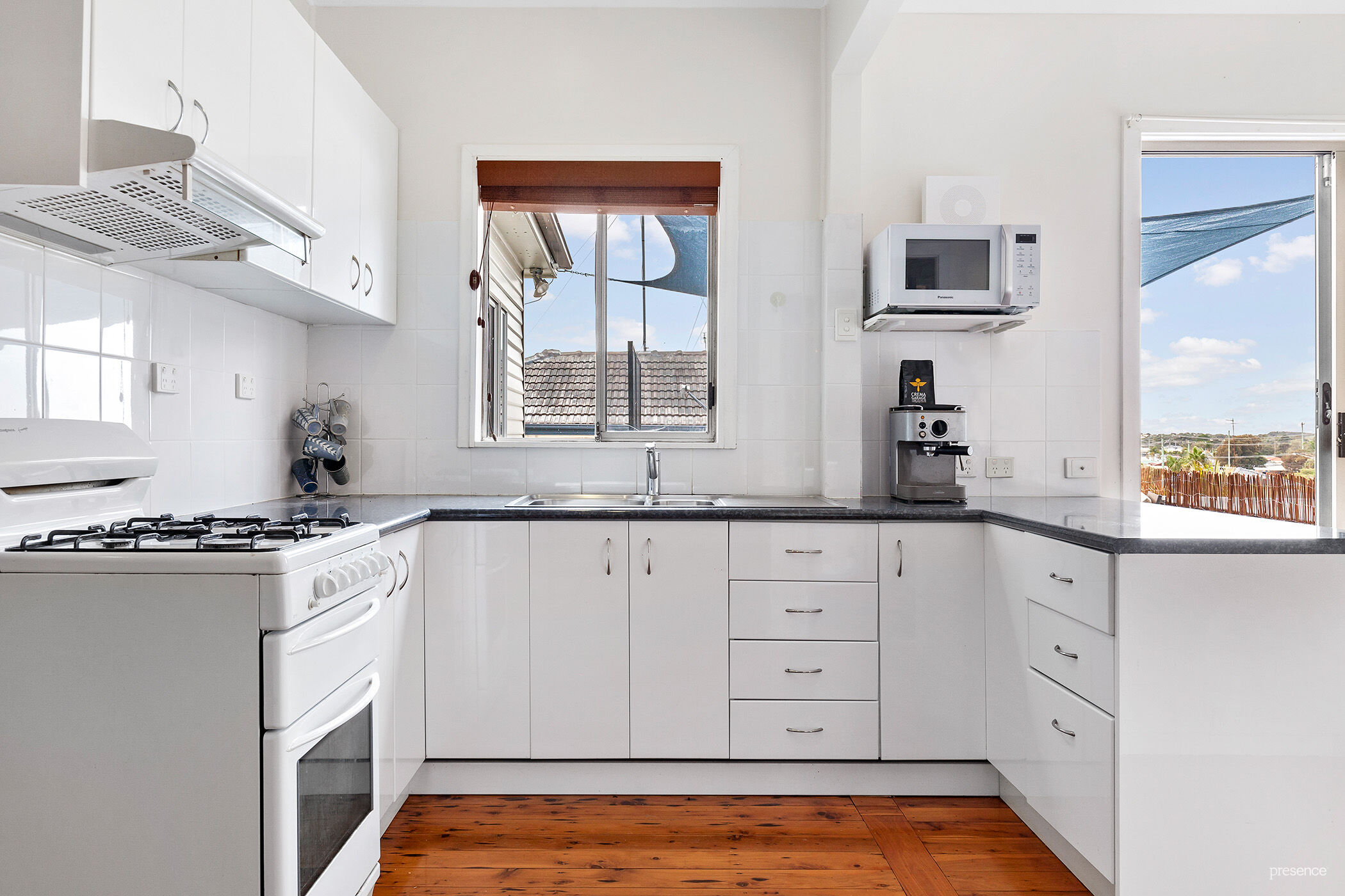 – Neat and tidy kitchen appointed with gas stove opens to alfresco terrace