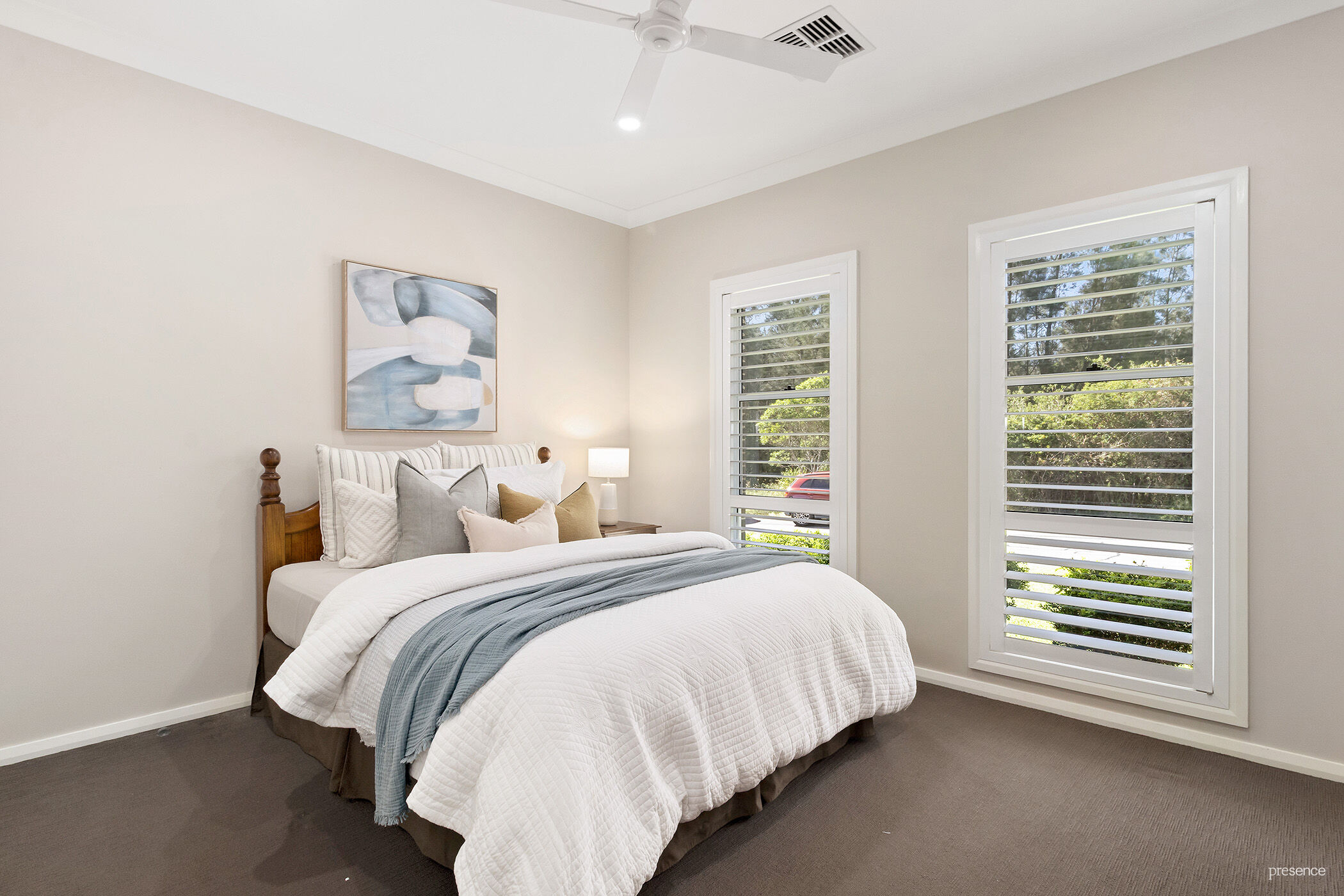 – Calm, light-filled interiors with soaring ceilings, spotted gum flooring, plantation shutters, and ducted air-conditioning throughout, plus 20 solar panels powering the home efficiently.