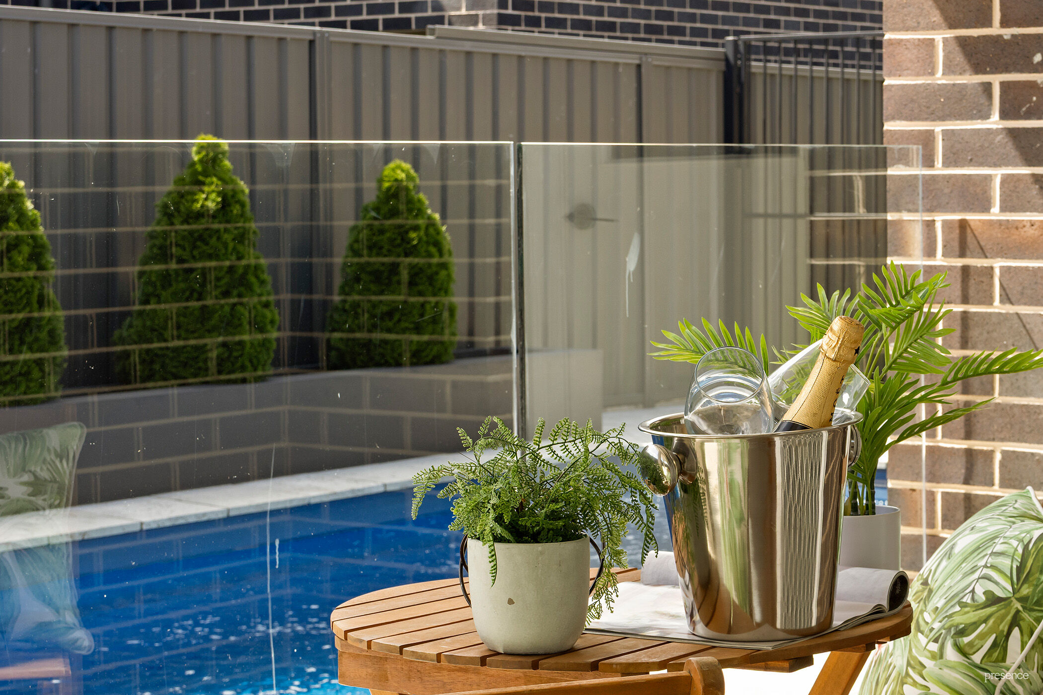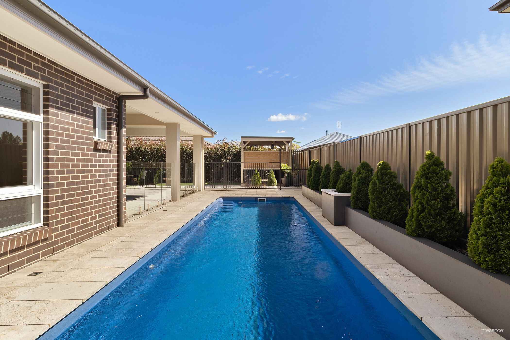 – Resort-style alfresco entertaining area overlooking a north-facing pool, outdoor kitchen, landscaped gardens, and level lawns.