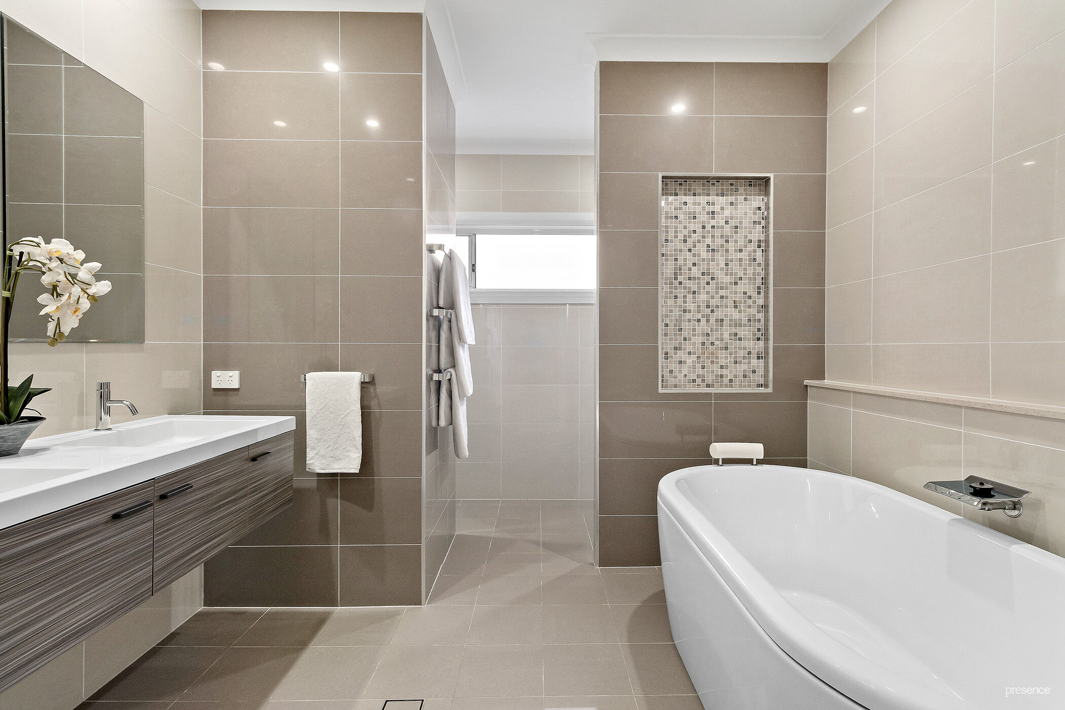 – Three bathrooms include a stylish main with freestanding bath, walk-in shower, and concealed toilet, a private guest bathroom and an ensuite to the master.