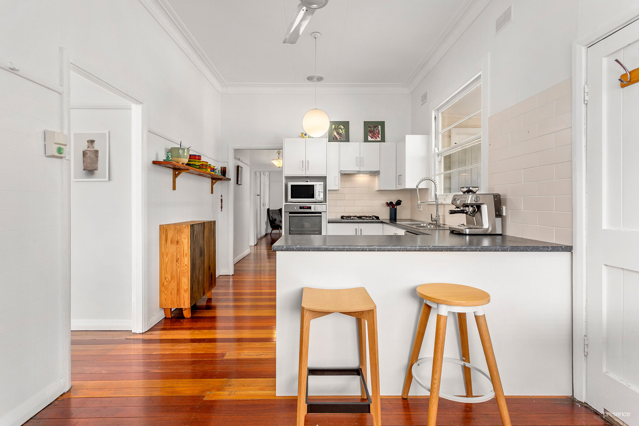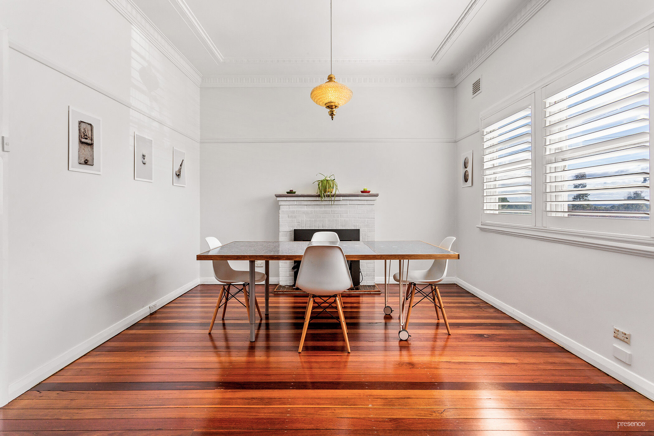 Presenting a stunning combination of period and modern features within you’ll discover ornate ceilings, picture rails, period style light fittings and timber flooring complemented by white plantation shutters and modern upgrades. Two generous bedrooms are positioned privately to one side of the home while a large formal lounge and separate dining room enjoy a sunlit position to the front of the home. The picturesque formal dining room featuring woodstove fireplace and decorative mantel offers an opportunity to convert to a beautiful third bedroom (STCA).