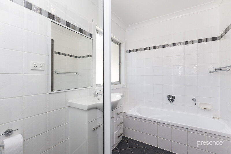The home has a functional floor plan with low maintenance interiors awash with sunshine and natural light, and a warm and inviting feel with a mix of floating floors and quality carpet underfoot. The combined living and dining room maximizes space and encompasses the spotless electric-equipped kitchen. Glass sliding doors open onto the balcony; basking in easterly sun, it’s a great spot for your morning cuppa. The full family bathroom takes on the modern design palette of the kitchen to create a seamless aesthetic throughout. Four bedrooms and a handy study nook complete the floor plan and provide a comfy place to rest. Peaceful and private, it’s surrounded by well cared for gardens, with a deck for alfresco dinners and a secure carport for two vehicles along with ample driveway parking.