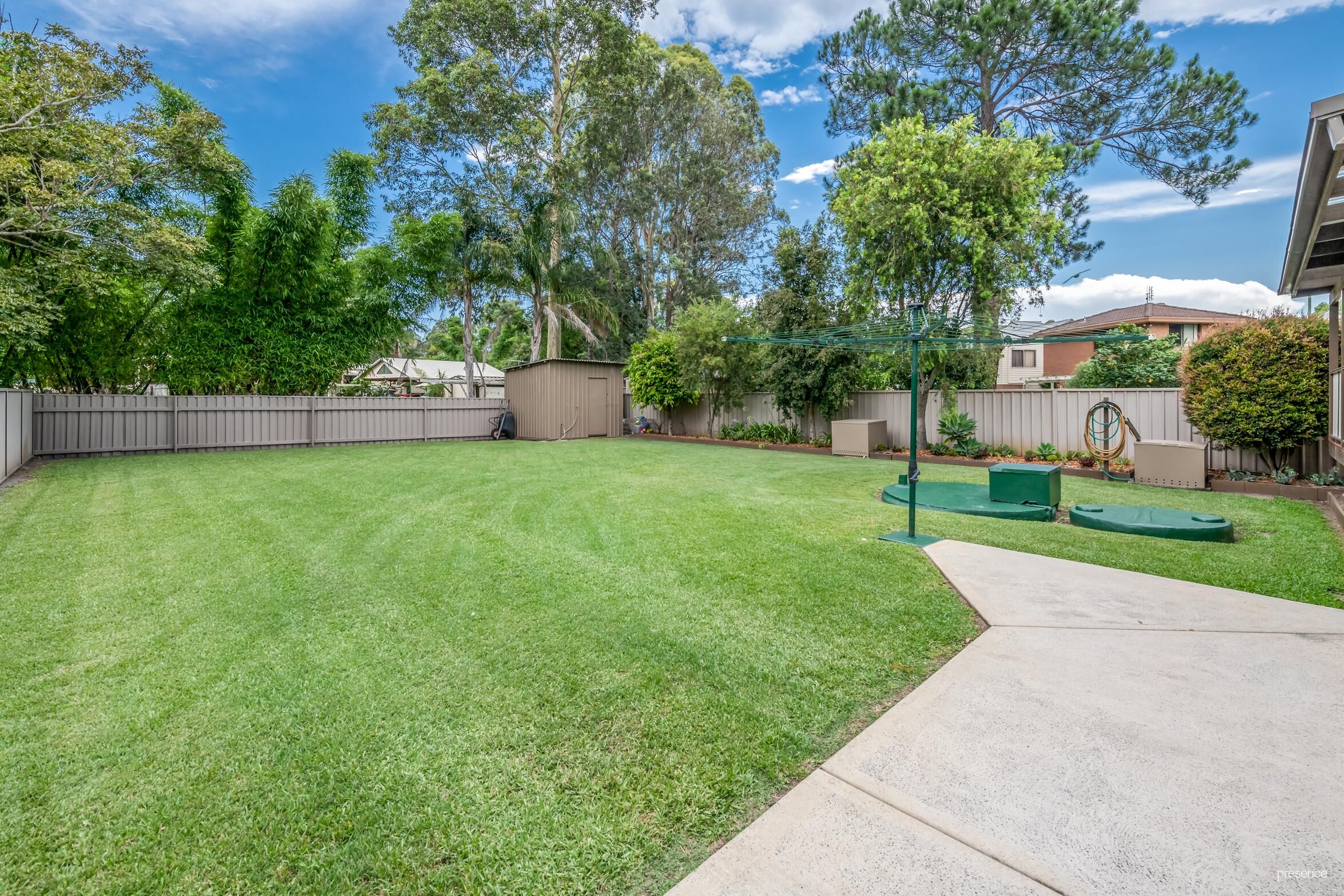 – Single level home bordered by easycare garden surrounds with bore water
