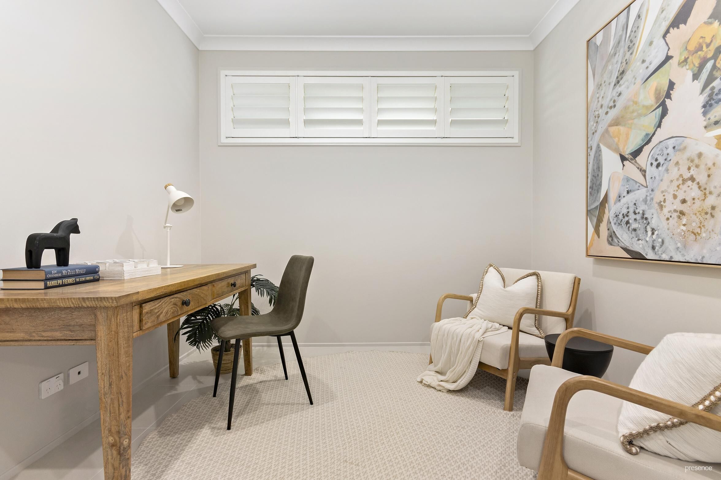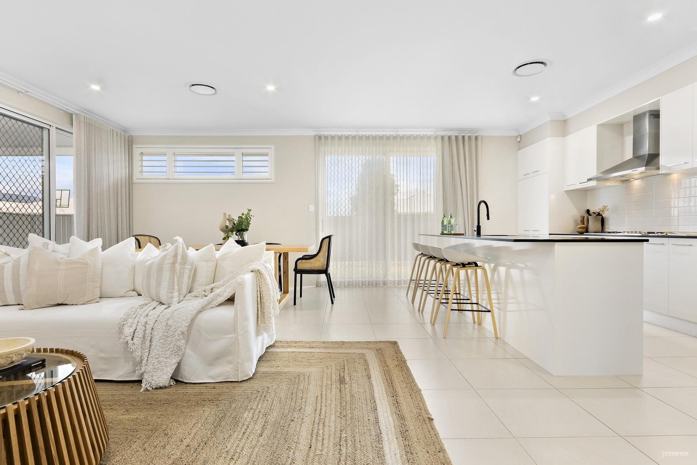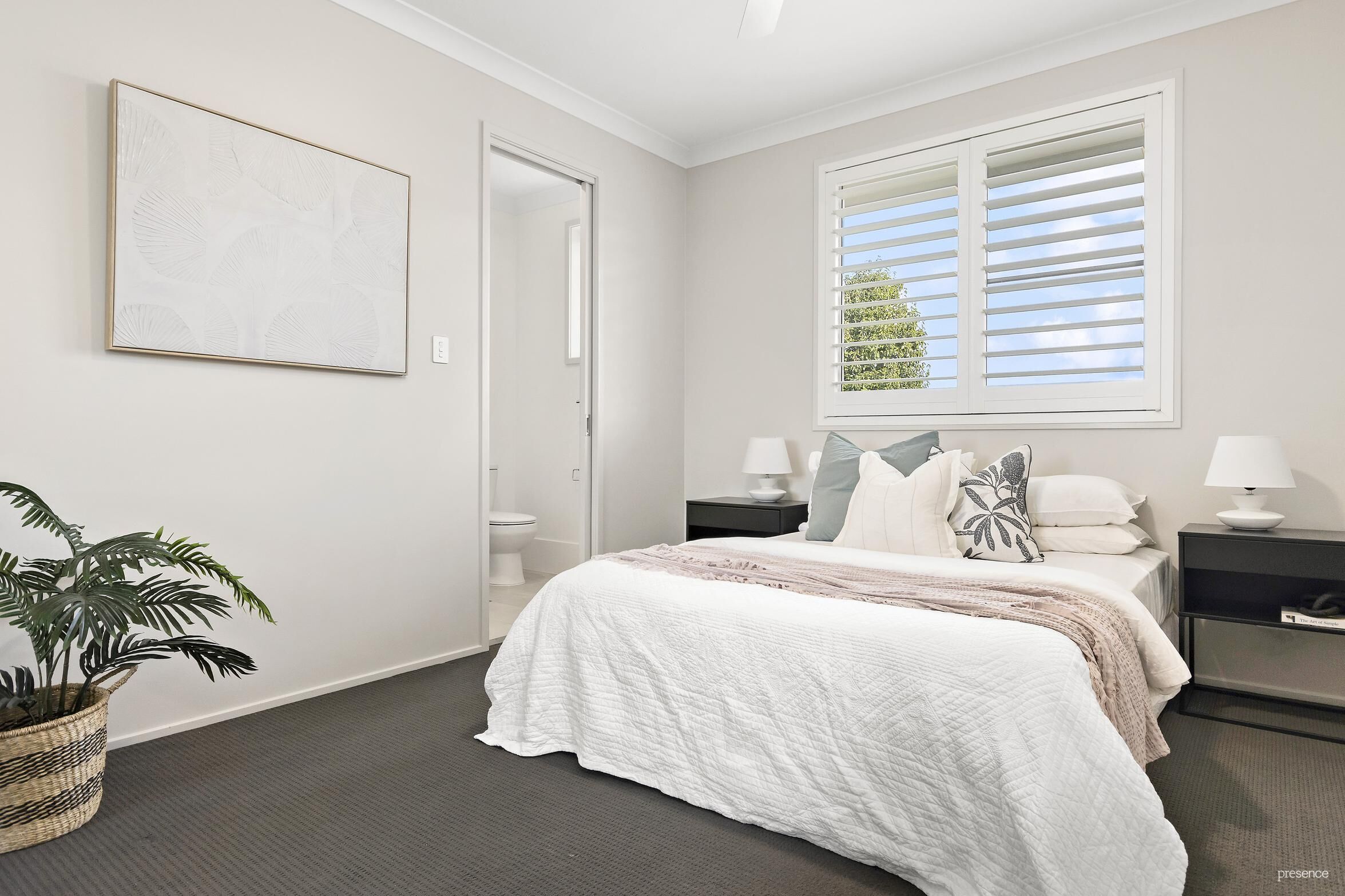 Nestled on a generous 622.4sqm corner block, this home boasts secondary access with double gates leading to a large concrete pad. It’s a breeze to park your boat, motorhome, or extra vehicles off the street here. Only four years young, the house radiates contemporary charm. Gather the family for a movie night in the home theatre room, unwind or host friends in the spacious open plan living and dining area, or let the kids delve into books in their own activities corner. Privacy is paramount for both parents and guests with these two bedrooms set away from the social spaces and each featuring an ensuite bathroom. The home is rounded off with ducted air conditioning, elegant plantation shutters, and a stunning island kitchen complete with top-notch appliances and a vast walk-in pantry.