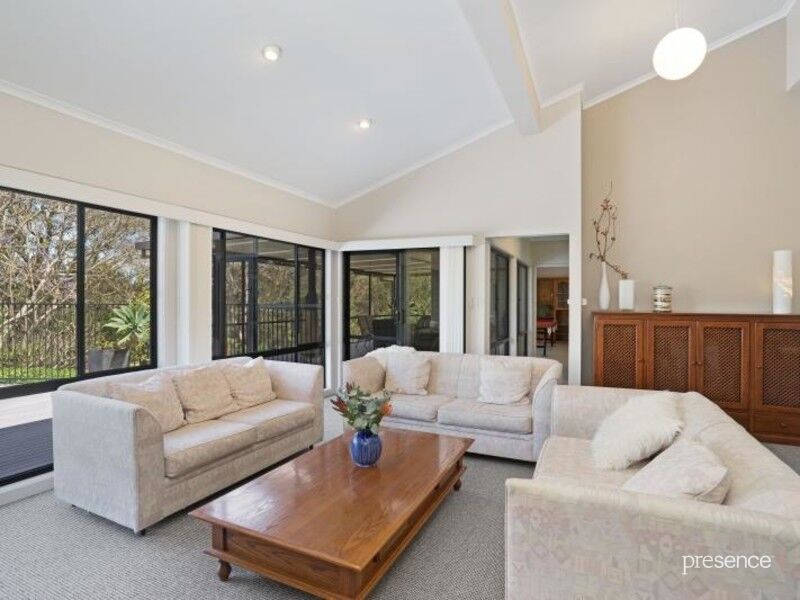 Downstairs, walls of glass create an immediate connection with the fabulous enclosed deck, refreshing saltwater pool and expansive lawns. An exceptionally private oasis, this tranquil space is enveloped by a canopy of lush trees, creating an exceptional setting where king parrots and rainbow lorikeets come down to say hello. Upstairs, four bedrooms and two bathrooms achieve sanctuary status while a long list of desired inclusions, among them, air-conditioning, ducted vacuuming, vast amounts of storage, gas heating, double garage and workshop enhance peerless lifestyle excellence.