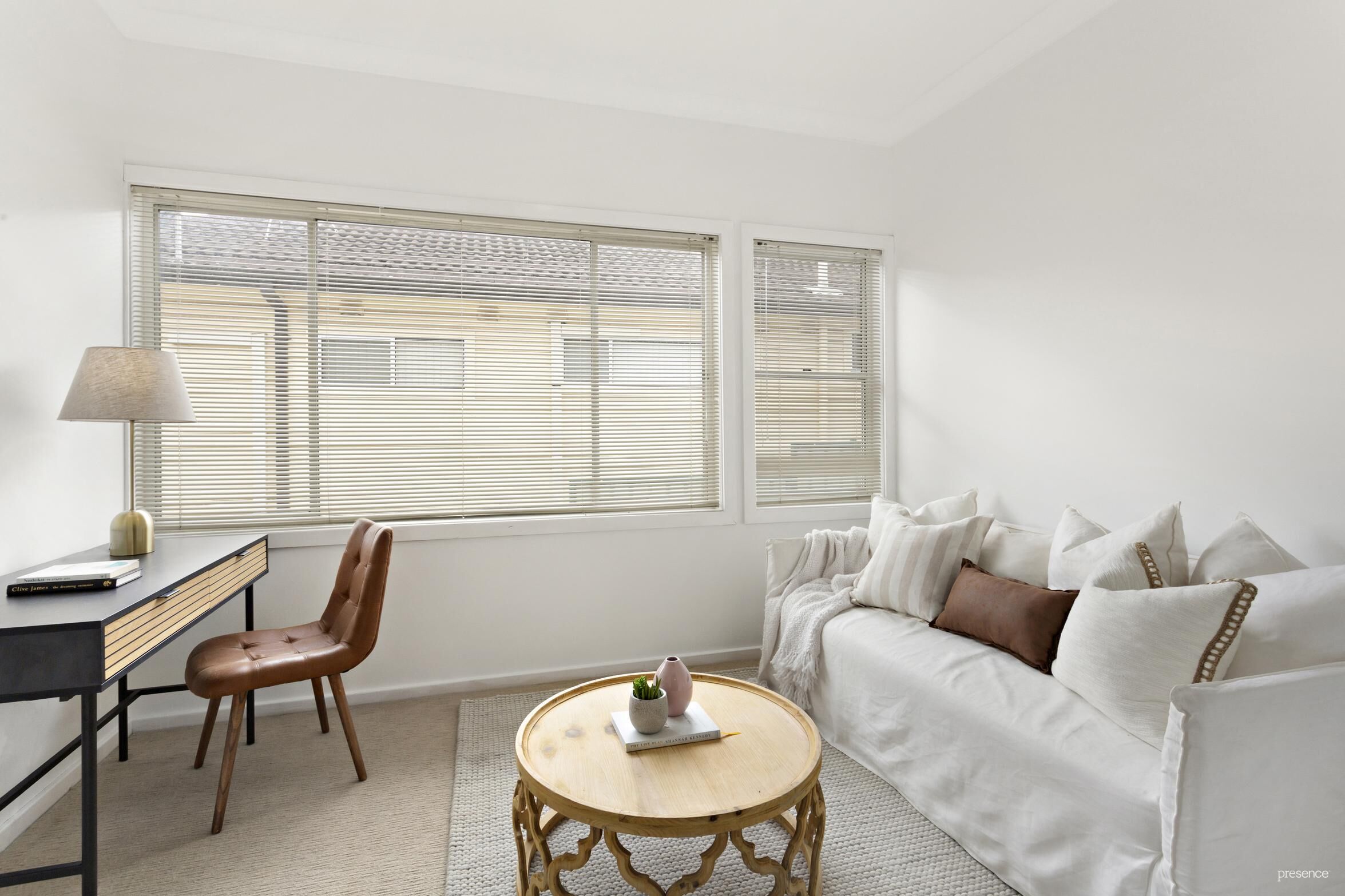Modern updates have made this three-bedroom plus study home effortlessly comfortable, with 2.8m tall ceilings in the main living area perfectly positioned to soak up the northern light and winter sunshine. Bi-fold doors open seamlessly to a covered deck, perfect for alfresco entertaining. The heart of the home is the island kitchen, which overlooks the dining area and flows through French doors into a second living space. Three bedrooms plus a study are all serviced by a full-size bathroom. Meticulously kept, this home is move-in ready, but if you’re feeling creative, there’s potential to reconfigure the layout to create a fourth bedroom with ease.