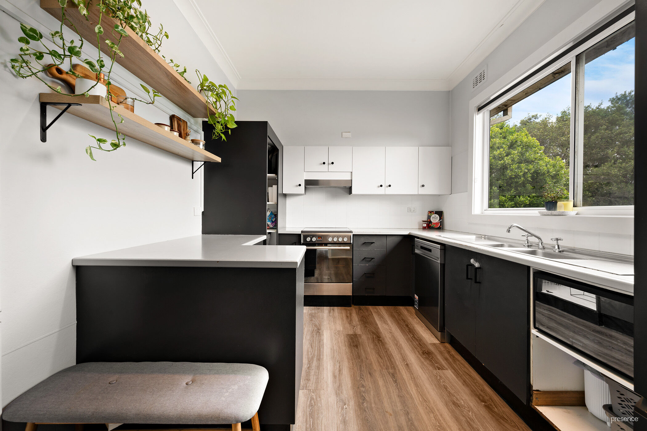 – Updated kitchen with freestanding stainless-steel oven and dishwasher, along with a corner pantry and generous storage and bench space.