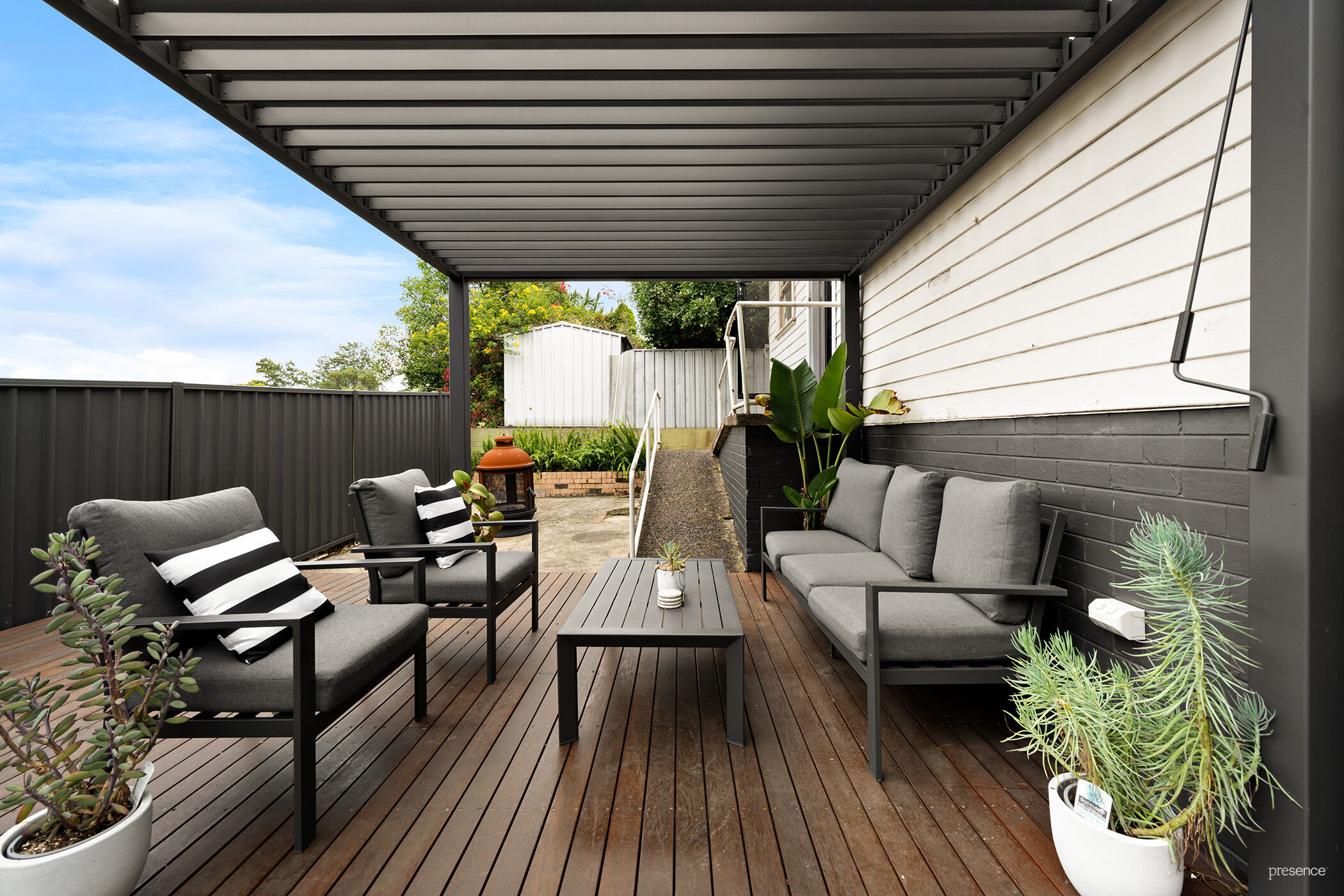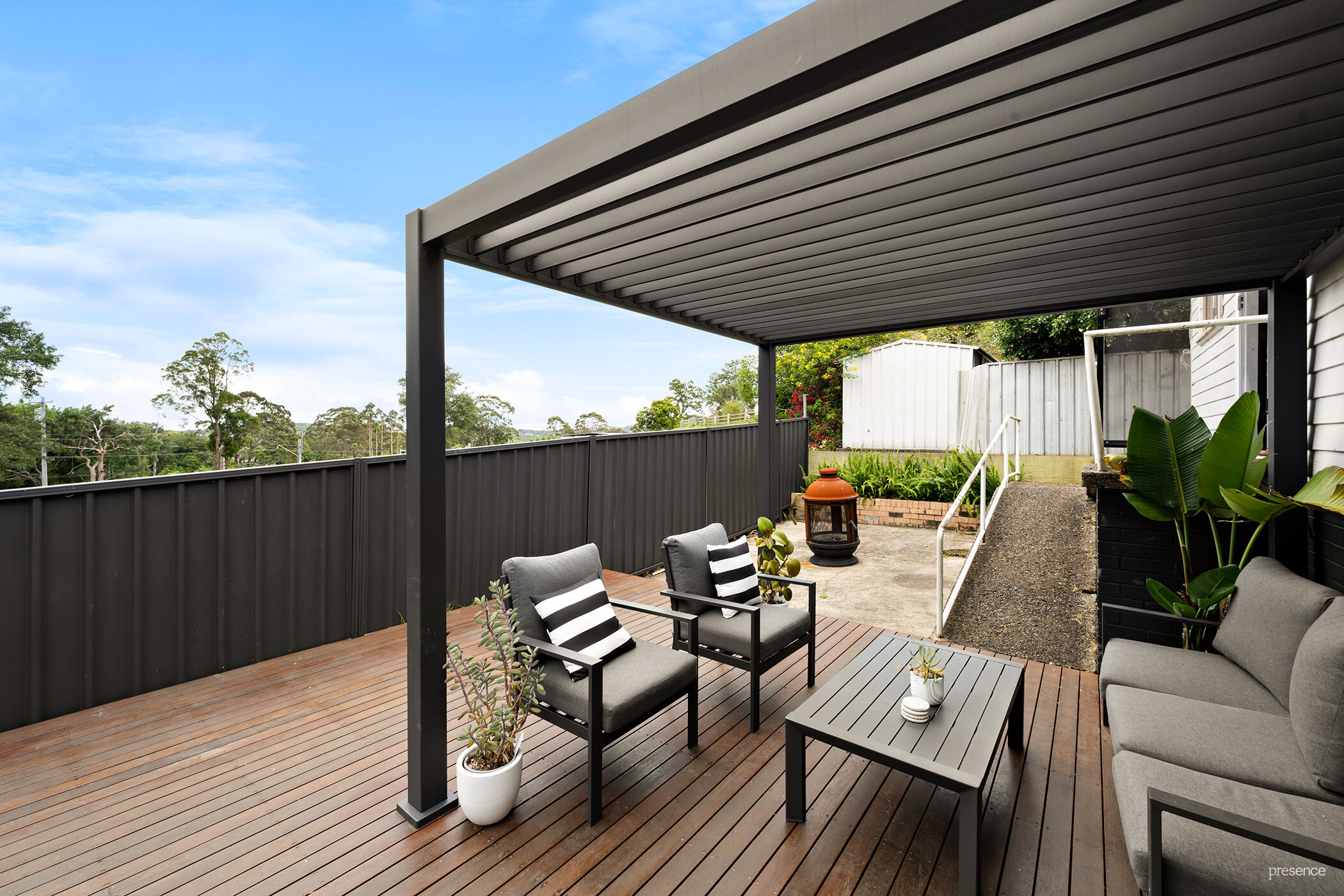 The backyard is designed for both relaxed living and easy entertaining. Fully fenced for kids and pets, it combines paved areas with a covered timber alfresco deck, and a good-sized level lawn suitable for play equipment. A single garage is located beneath the home, accompanied by extensive under-house storage.