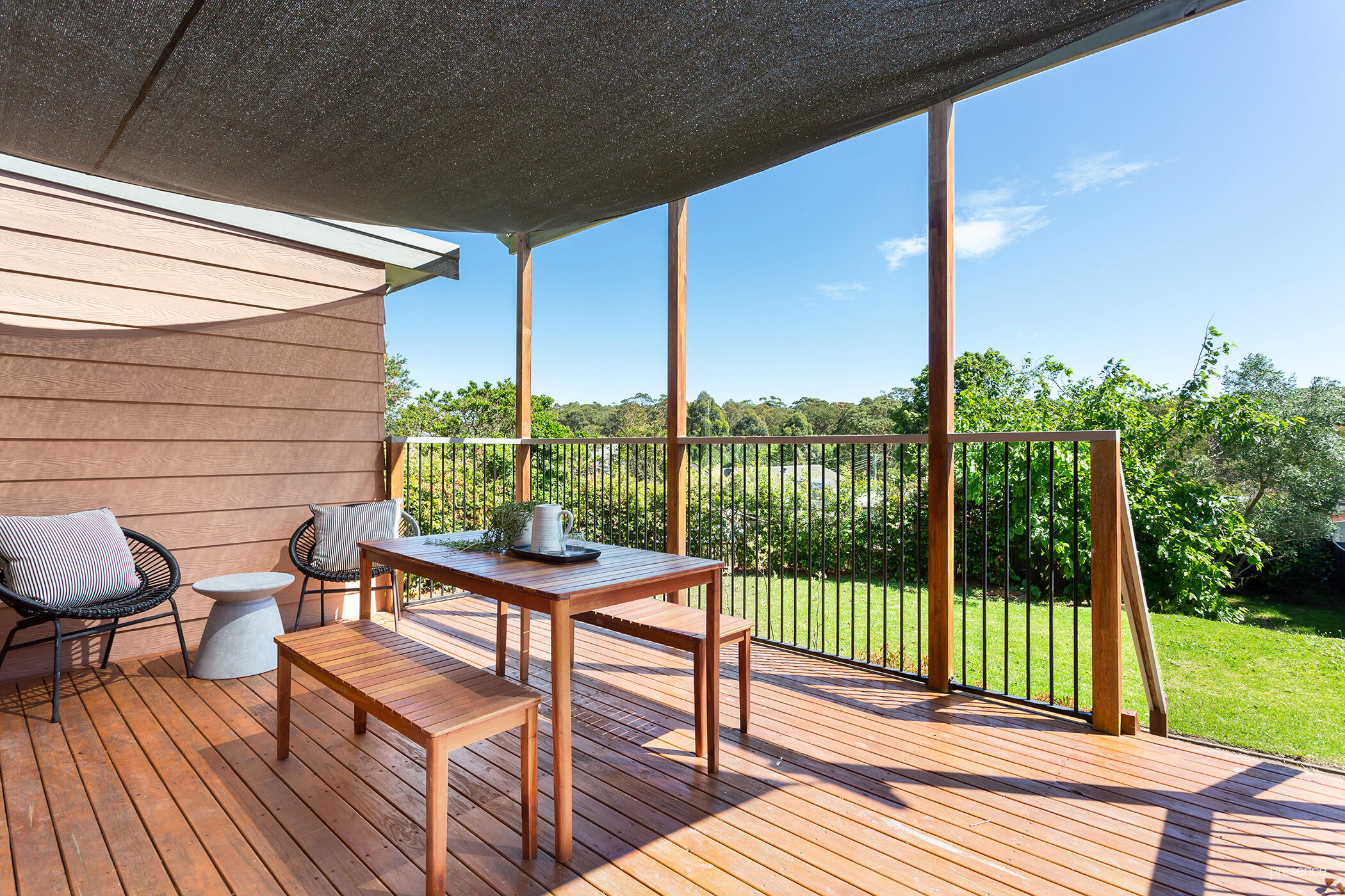 An alfresco deck is placed to enjoy leafy views and beautiful northerly sunshine, which also brings lovely natural light into the home. The fenced yard allows kids and pets to run around with a sense of freedom, while under the home there is plenty of storage for bikes, surfboards, and garden tools. A single garage plus driveway parking ties the bow.