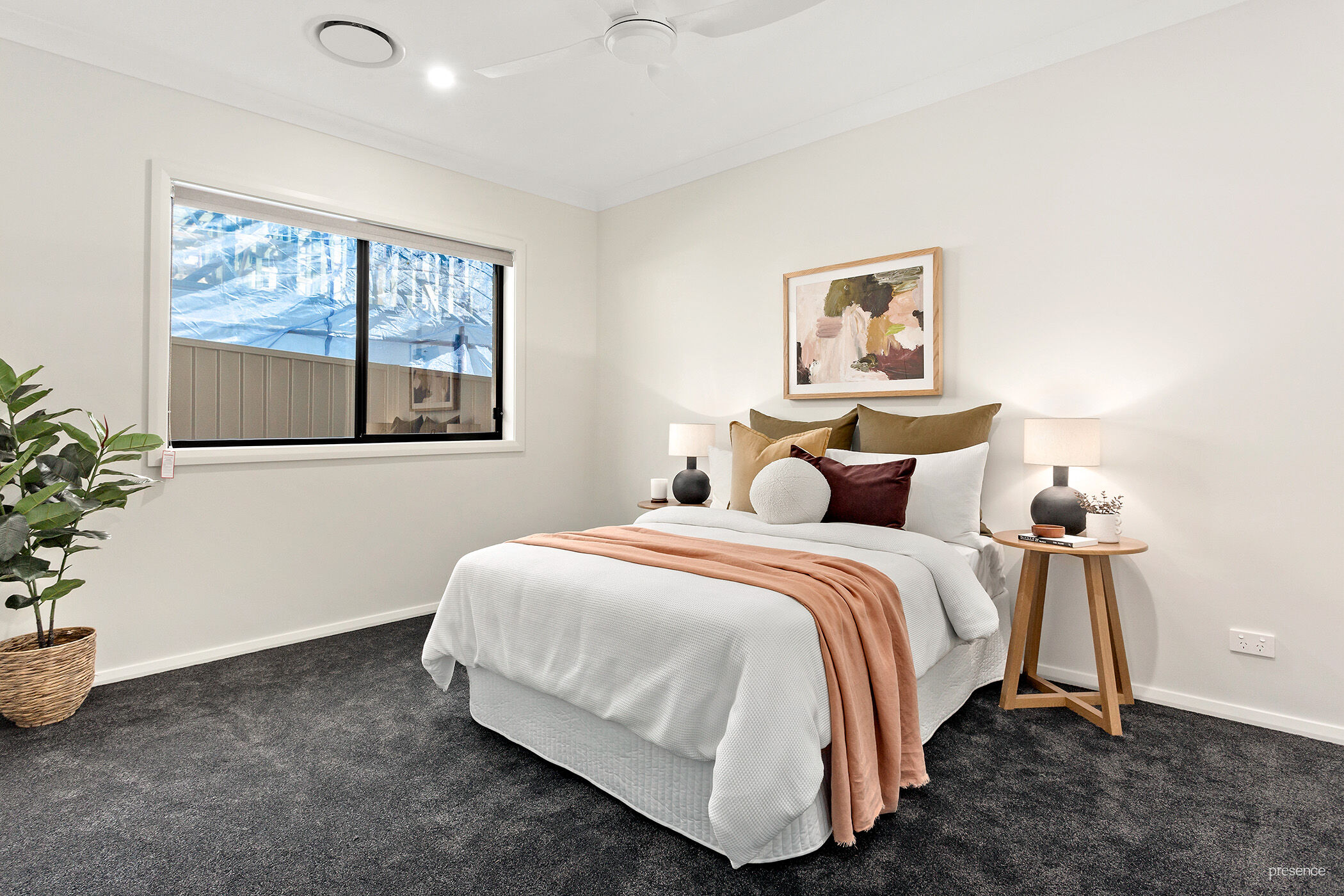 – Four carpeted and robed bedrooms with ceiling fans, oversized master with ensuite