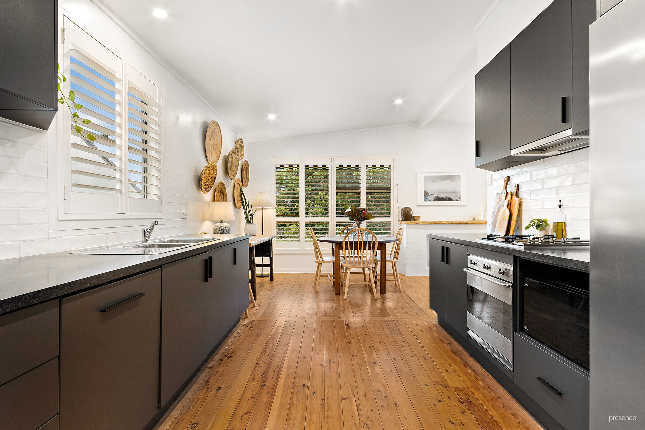 Radiating street appeal from the moment you arrive, a sun-lit front timber deck guides you through to an inviting entry and an open plan living, dining and kitchen area that all seamlessly intertwine. With an abundance of natural light filtering through plantation shutters and timber floorboards underfoot, these elements all blend together to create an enviable home hub.