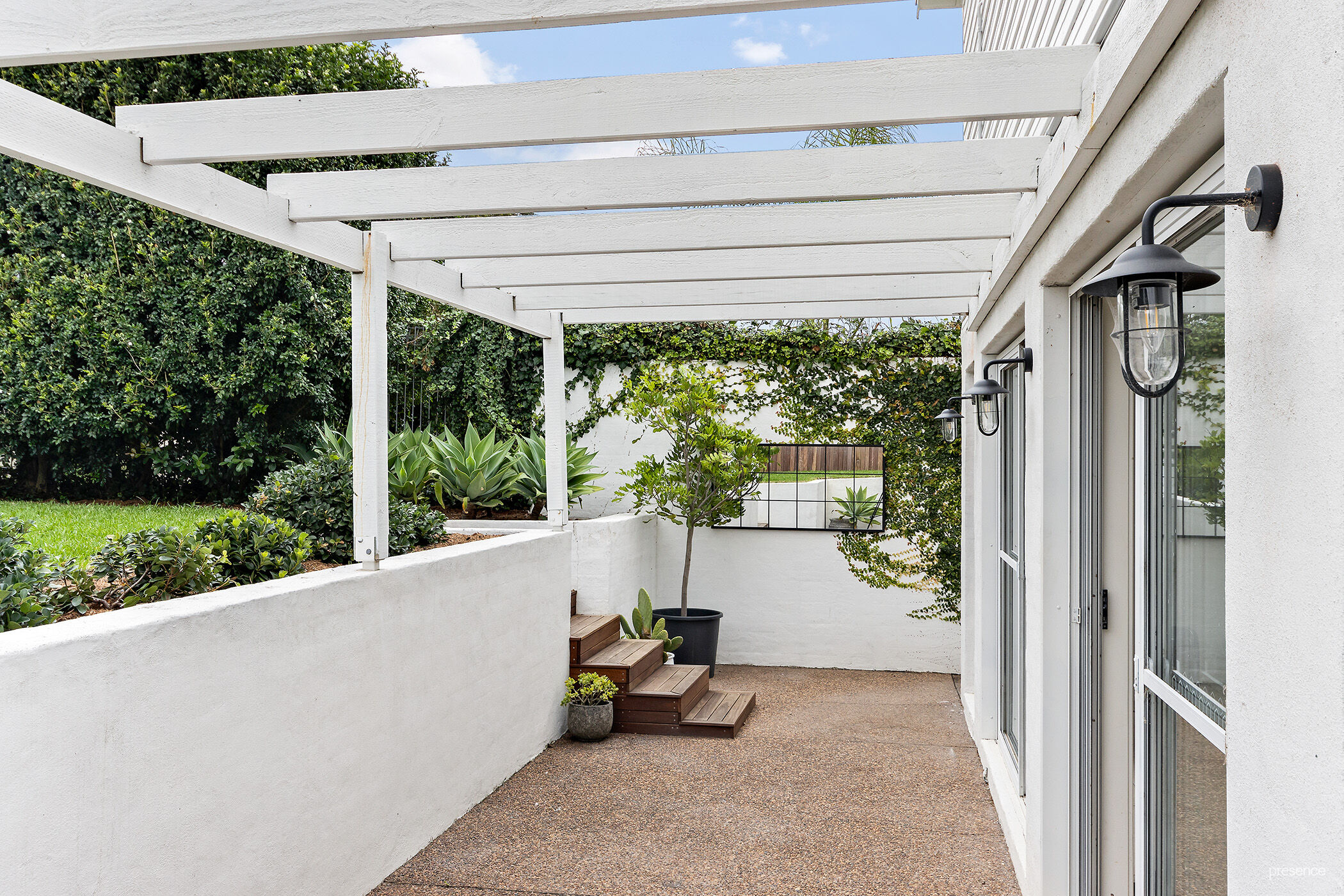 – Drive through access to private multi-level backyard